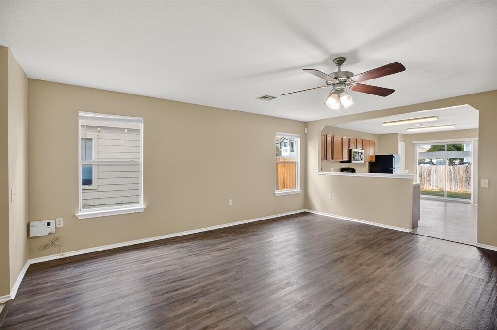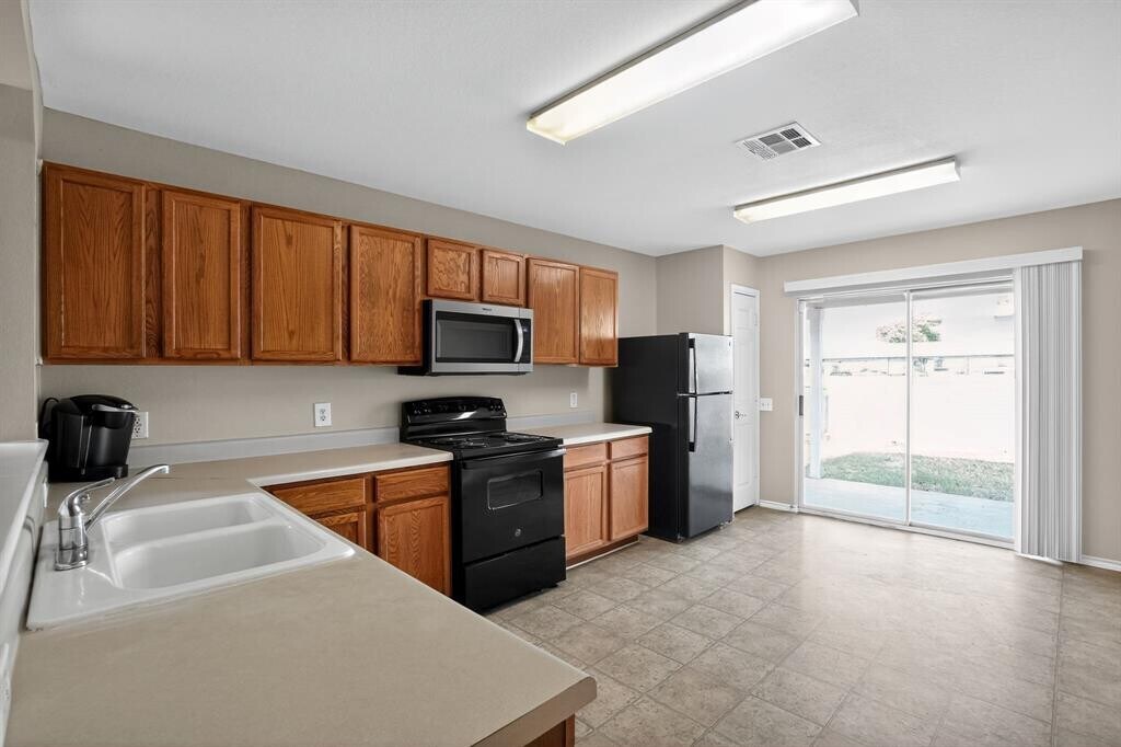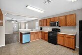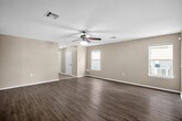 Welcome to this charming two-story home that blends comfort and modern style. The inviting exterior features a classic brick and siding design, an attached two-car garage, and a spacious driveway. Inside, youll find open living areas with beautiful dark wood-look laminate flooring and neutral tones that create a warm, airy feel. The kitchen offers plenty of storage with rich wood cabinetry, light countertops, and sleek black appliances. Sliding doors open to a covered patio and fenced backyardperfect for relaxing or entertaining outdoors. Multiple living spaces throughout the home provide flexibility for dining, work, or play, all filled with natural light. With its functional layout and inviting atmosphere, this home offers a wonderful opportunity for comfortable everyday living and easy entertaining. Pets ok; limit two; 35lbs or less. *** Resident must choose between two resident benefit packages at time of application.