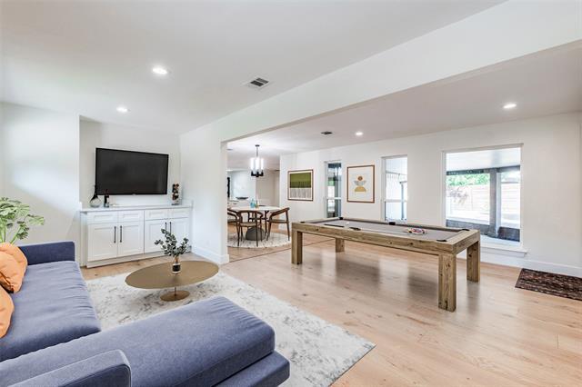 Experience refined living in this one-of-a-kind, fully renovated home in Dallas featuring an oversized pool and exceptional natural surroundings. This single-story residence is nestled in a tranquil neighborhood highlighted by tree-lined streets along Five Mile Creek and a scenic greenbelt backdrop. Enjoy beautiful views from both the front and backyard—perfect for nature lovers. Inside, the home offers an open-concept layout filled with abundant natural light, complemented by wood flooring throughout. The flexible floor plan allows you to customize living spaces to suit your lifestyle. With 2,572 square feet, this comfortable and spacious home includes 3 bedrooms, a private study, 2 bathrooms, 2 living areas, and 2 dining spaces. Additional features include a 2-car garage, a gated 2-car carport, and a storage area within the garage. The office or study is filled with natural light and overlooks a charming patio surrounded by greenery—an ideal workspace. The deluxe kitchen showcases a stunning oversized island with double-sided waterfall quartz, offering generous seating—perfect for everyday living and entertaining. Designer touches and high-end finishes are found throughout the home. Step outside to a large private backyard and enjoy serene views of the oversized pool and mature trees along the greenbelt. Located within walking distance to Kiest Park, approximately 268 acres, with access to trails, sports facilities, and nearby private school. Conveniently situated with easy access to I-35 and just minutes from Downtown Dallas and the Bishop Arts District, offering exceptional dining, shopping, and entertainment. Pool service is included in the rent, so you can relax and enjoy.