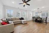 Modern,move-in-ready two-story home for lease in the master-planned community of Bridgeland. This light-filled home features an open-concept layout with wood-look tile flooring,neutral finishes,and walls of windows. The kitchen offers white cabinetry,quartz countertops,stainless steel appliances,gas range,designer lighting,and a large island overlooking the living and dining areas. Living room sofa and dining table are included,making this home truly turnkey. Upstairs includes a spacious flex/game room with access to a private balcony,perfect for relaxing. The primary suite features a stylish ensuite bath with dual vanities and walk-in shower. Washer,dryer,and refrigerator included. Walking distance to the elementary school,parks,and trails,with access to Bridgeland’s resort-style amenities including pools,lakes,fitness centers,and more. MLS# 45245855