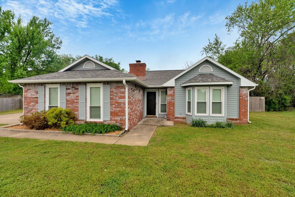 This stunning home is located near butterfield elementary on a private cul-de-sac! Fully repainted with new carpets in bedrooms, brand new bathroom vanities in both baths, new tiled walk in shower, and new gust tub/shower, this home is in FABULOUS condition and ready for it's new tenant! Spacious kitchen with eat-in diing area, abundant cabinets, and bar seating. The living room has a fireplace and wood flooring. Updated light fixtures, outlets, and paddle switches throughout. The cul-de-sac lot features a massive back yard which is fully fenced, along with a covered back patio to enjoy the space. This will go quick so don't miss out! Near shopping, I-49, and parks!