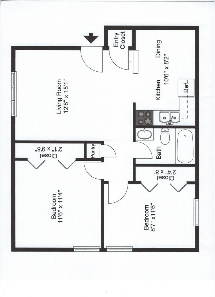 - 2BR, 1BA