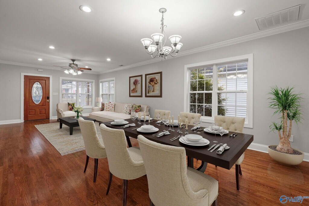 Experience the charm of 5 Points in this beautifully renovated 1940s bungalow just minutes from Downtown Huntsville.Filled with natural light and character,this 2-bed,1.5-bath home features hardwood floors,a spacious living room,a dedicated dining space,and an inviting kitchen with plenty of storage. The oversized backyard and covered patio extend your living outdoors—perfect for morning coffee,pets,or entertaining. Additional perks include a large utility/laundry area and off-street parking w/alley access. Located in one of Huntsville’s most beloved neighborhoods!