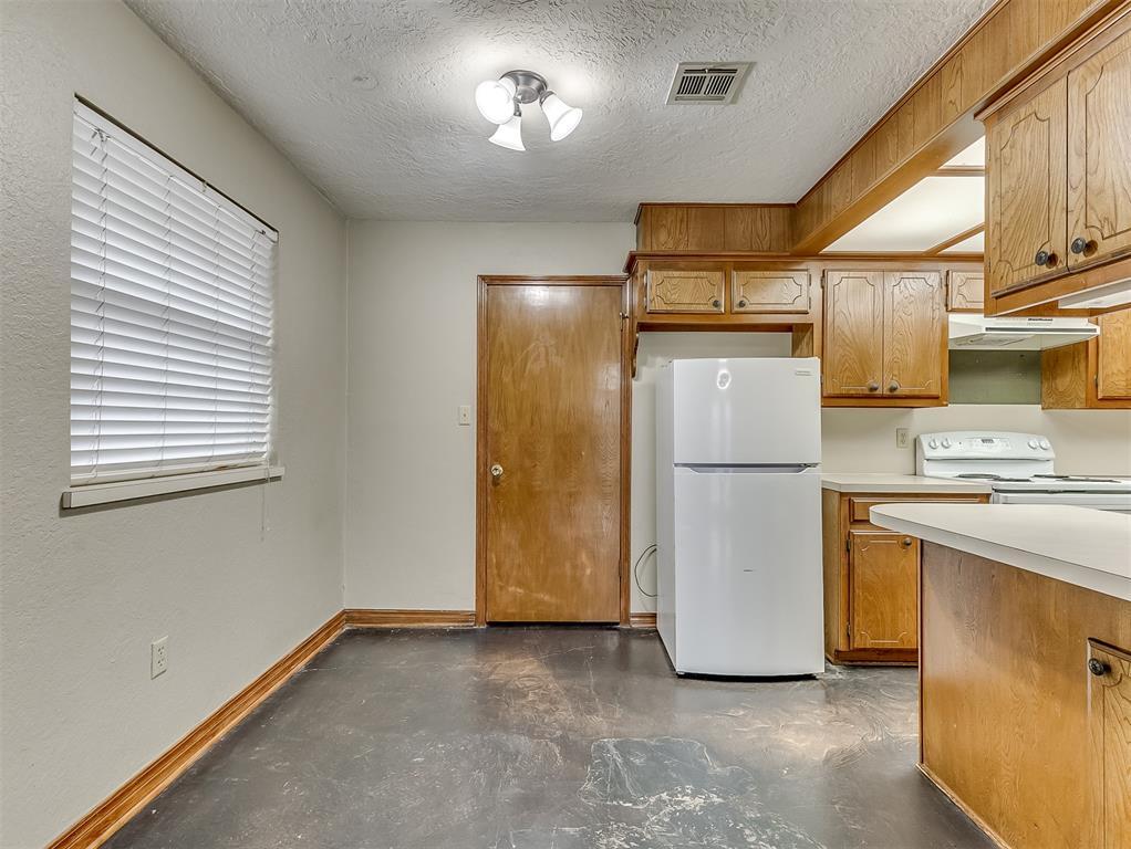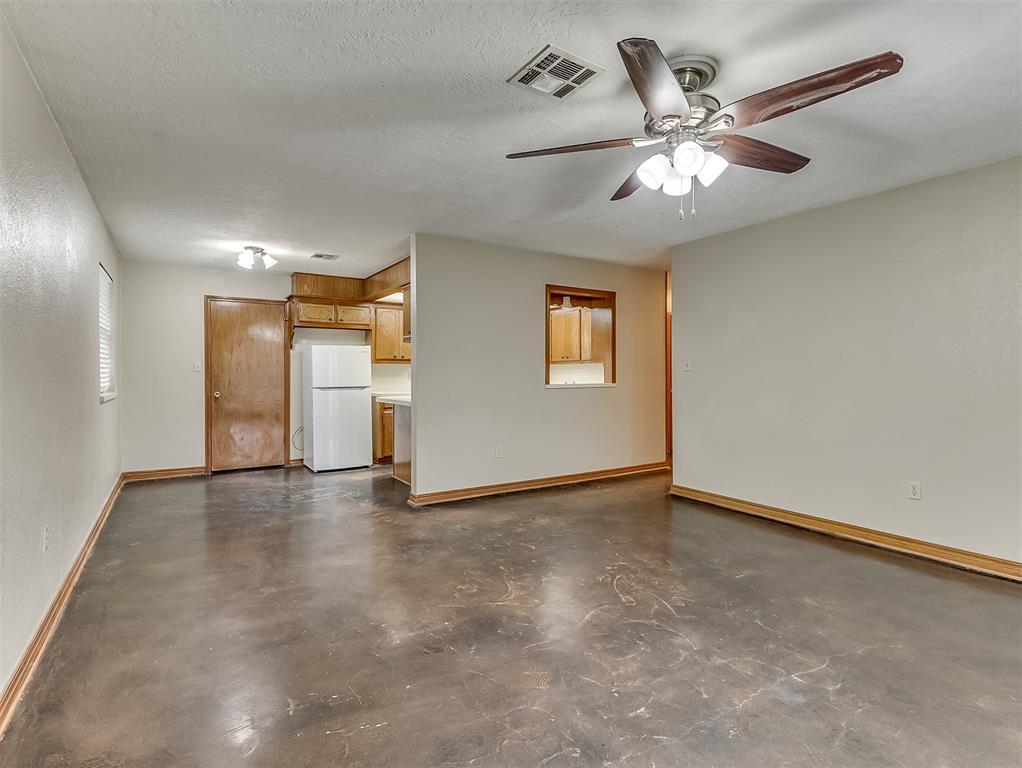 Consider this fantastic 3/2/2 brick home in an established neighborhood less than 2 miles from OU. This house 1215 sq ft home is in great condition and comes with appliances to include fridge,stove,dishwasher,washer/dryer (as is),and disposal. Entire interior nicely painted with neutral colors. It has a large living room and master bedroom,a wonderful kitchen with lots of counter space,and an abundance of storage space with built-ins. Master bathroom newly remodeled with new shower. Stained concrete in kitchen,dining and living plus an indoor laundry. Tile in three bedrooms. NO CARPET! Nice lot with a privacy fence and a two car garage. Easy access to OU,Lindsey,Hwy 9,and lots of amenities on Norman's east side. Sorry,no smoking permitted on property. No pets. This gem of a home will not last long—just look at the pics! Broker/Owner.