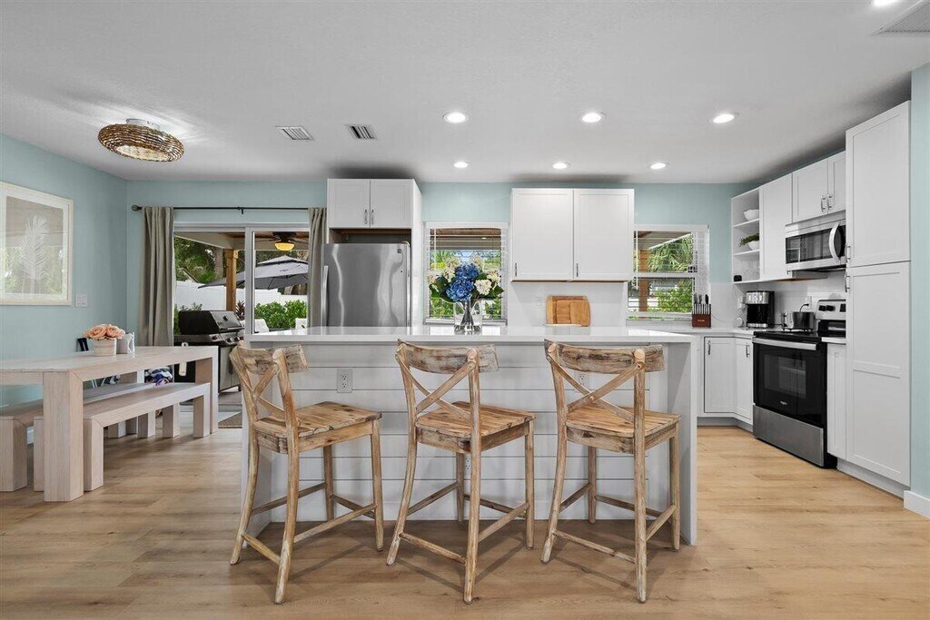 Season Rental - Available December 1, 2025 to March 31, 2026 Escape the cold and embrace the sun-drenched lifestyle of Jupiter, Florida where winter means warm breezes, clear skies, and endless outdoor adventure. This beautifully renovated 3-bedroom, 2-bath single-family home offers the ideal seasonal getaway, combining modern luxury with laid-back coastal charm in one of South Florida's most coveted destinations. Inside, the home welcomes you with an airy, open-concept design bathed in natural light. A stunning, fully updated kitchen features quartz countertops, stainless steel appliances, and ample space for casual mornings or festive holiday dinners. The spacious living and dining areas flow effortlessly into a lush, private backyard oasis, making indoor-outdoor living effortless.