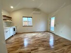 Enjoy the lifestyle that comes with this rebuilt studio ADU in the epicenter of Bend! Located just a couple blocks from some of Bend’s best restaurants and pubs, this home has everything you want just out your front door! This gorgeous studio ADU features an open floor plan with the BR separate from the kitchen/living area giving the impression of a 1 BR unit, and vaulted ceilings create the feeling of a much larger space. There are high-end finishes throughout, including beautiful laminate flooring, white quartz countertops, tiled backsplash, and an energy-efficient mini-split that provides heat and A/C. And the bathroom has a large walk-in shower with floor-to-ceiling subway tile surround. If you like living where the action is, there is no better place in Bend! • Air conditioning • Off-street parking • Vaulted ceilings • Hardwood Floors • Great Walkability close to Downtown • Fenced yard • Open floor plan