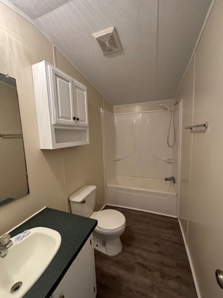 Single wide- 3 bedroom, 2 bath, over 1000 sq. ft. Open plan kitchen with glass top range, side by side refrigerator, dishwasher, good sized living room, utility room area with hook-ups, master bathroom has tub and separate shower, plus an extremely large storage shed - on a cul de sac. No smoking