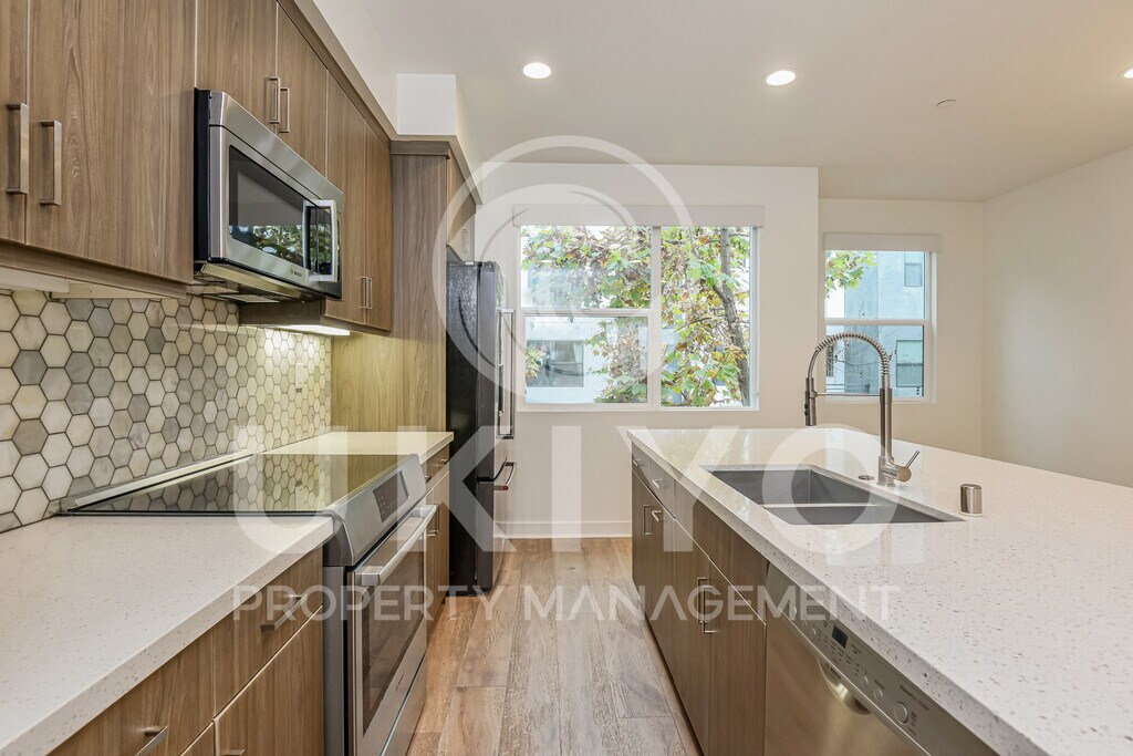 Experience modern urban living at its finest in this stylish three-story townhouse at 1518 Pullman Way in Oakland's vibrant Prescott neighborhood. Built in 2017 and offering approximately 1,644 sq. ft., this home features 2 bedrooms, 2.5 bathrooms, and a private attached garage. The bright, open-concept main level is perfect for entertaining, while the top floor offers two spacious ensuite bedrooms for maximum comfort and privacy. This home is enhanced with thoughtful upgrades throughout, including Hue smart lighting in the garden, dining room chandelier, and the primary bedroom chandelier. You'll also enjoy modern convenience with a Nest doorbell and Nest thermostat already installed. The HOA provides exceptional coverage—including landscaping, pest control, exterior window cleaning, and solar panel cleaning—offering a truly low-maintenance lifestyle. The location is unmatched: walking distance to West Oakland BART, making SF and the East Bay easily accessible. You're minutes from major highways and conveniently close to Target, Home Depot, Michael's, Best Buy, and the bike trail that leads directly to Treasure Island. Prescott Market is a local favorite just steps away, and the Sunday Farmers' Market is a beloved neighborhood staple, perfect for weekly groceries and fresh local finds. With modern amenities, smart-home features, and an unbeatable location, this home offers the ideal blend of comfort, style, and convenience. Lease Terms and Disclosures This home is available for immediate move-in. Contact us today to place a deposit and secure it. Offered with a one-year lease term. This property will be leased to the best-qualified applicant based on credit score, credit history, income-to-debt ratio, the soonest lease start date, and an offer at or above the listed price. Note: The lease start date may differ from the physical move-in date. Applicants are encouraged to offer the earliest lease start date they can accommodate to strengthen their application. Application fee is $49 per adult. We accept Zillow rental applications with no additional fees. Application screening includes credit check, background check, rental reference check, employment verification (if applicable), and income and identity verification. Minimum credit score required is 650 FICO. Income must be at least three times (3.0x) the monthly rent in gross income. A debt-to-income ratio of 35% or less is preferred. The security deposit is equal to one month's rent. Residents are responsible for all utilities and landscaping maintenance (if applicable). Residents are required to carry renter's insurance with a minimum of $100,000 in personal liability coverage. This is a non-smoking property. Pet-friendly: $500 deposit per pet and $50 monthly pet rent per pet. Two-pet maximum. No breed or weight restrictions. Property is offered unfurnished. Any furnishings shown in photos are for staging purposes only. All photos are representative of the property's general condition and finishes. Actual finishes and conditions may vary. If applicable, all fireplaces are considered decorative only and are not to be used for any combustible materials. Property is leased in AS-IS condition. No upgrades, improvements, or alterations are included or implied. Any floor plans or measurements shown are approximate and not guaranteed. Parking may be offered. Please contact management for details. Professionally managed by Ukiyo Property Management Inc., CA DRE# 02195113. We provide online rent payments, maintenance requests, and prompt, professional communication. This listing was posted by a licensed real estate broker, Nicholas Bruce, CA DRE# 01972378.