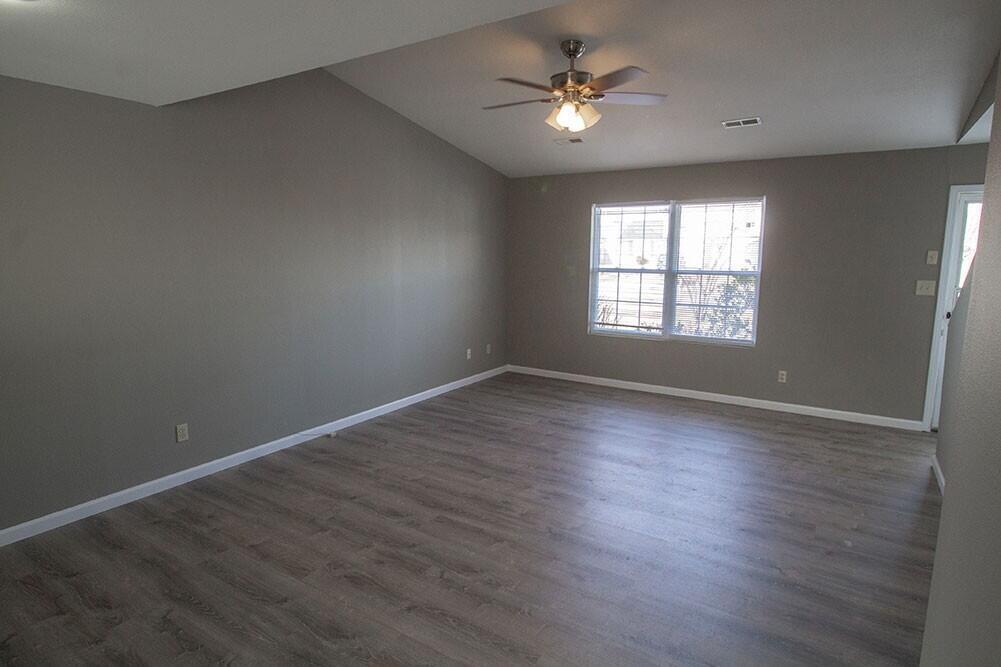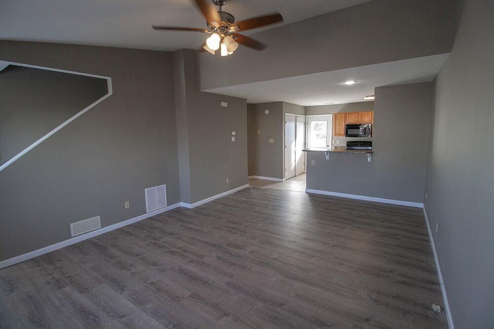 Located in the Auburn Hills subdivision on the north side,this 3 bedroom,2 bath duplex offers a comfortable and functional layout. The main level features a primary bedroom with a walk in closet,a second bedroom,a fully equipped kitchen,and washer and dryer hookups conveniently located across the hall. Upstairs you will find two additional bedrooms and a full bathroom. Luxury vinyl plank flooring runs throughout the entire unit,adding both style and durability. A one car garage and lawn mowing are included for added convenience.
