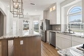 Welcome to one of the most beautiful homes in the neighborhood,a former model built in 2022, perfectly situated on a spacious corner lot right at the entrance of the community. From the moment you arrive, the upgraded exterior, mature landscaping, and extended covered patio set the tone for what you’ll find inside. Step through the front door and you’re greeted by soaring ceilings, an elegant spiral staircase, and a home that was thoughtfully designed with both comfort and style in mind. Every inch is loaded with upgrades — from smart home features like thermostats, built-in cameras, and surround sound, to custom lighting, modern wood-style flooring, and porcelain tile in all the right places. The kitchen and bathrooms feature high-end finishes, including stone countertops and tile accent walls that give the home a sleek, designer feel. There are walk-in closets in every bedroom, a spacious pantry with a coffee bar, and plenty of built-in storage throughout. The living spaces, office, and bedrooms include custom accent walls and upgraded trim work that make the home feel truly elevated. It’s rare to find a property this well-maintained — it still feels brand new. Schedule a tour today.
