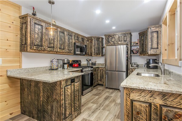 This fully remodeled property boasts upscale finishes throughout, including stunning granite countertops, custom cabinetry, luxury vinyl flooring, and beautifully tiled showers. The cottage features an expansive wraparound porch, perfect for enjoying the stunning surroundings. Additionally, a private meadow along a genuine mountain trout stream is accessible just across the road. For convenience, Starlink (WiFi) is available. This exceptional mountain retreat is ideally situated, being only 15 minutes from Blue Ridge, 10 minutes from Blue Ridge Lake, and 10 minutes from the Toccoa River tailwaters. Pets Considered.