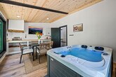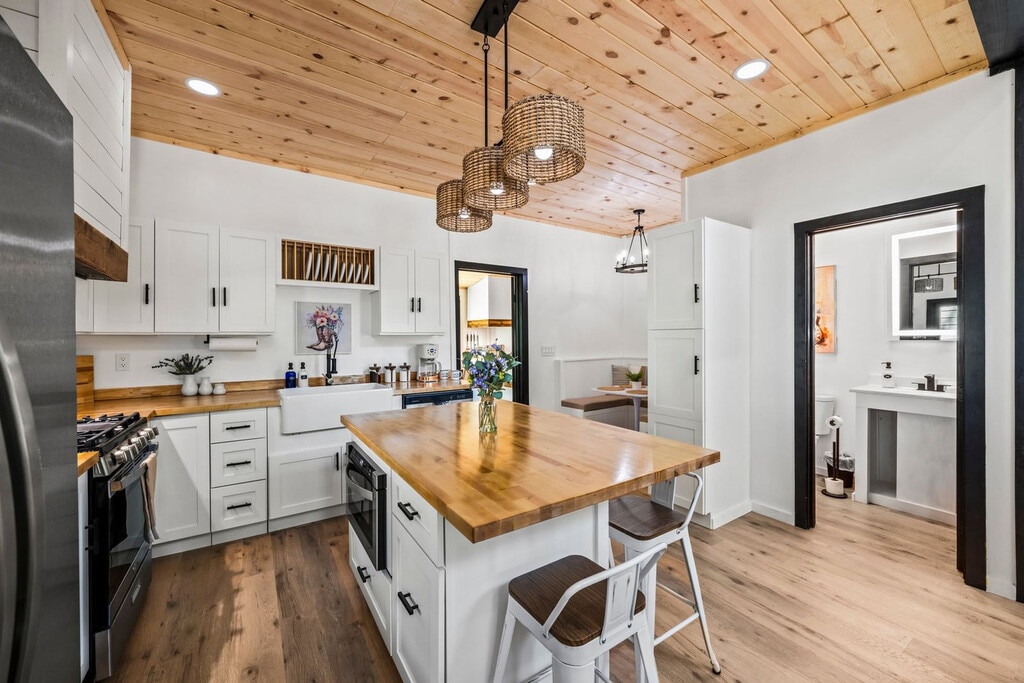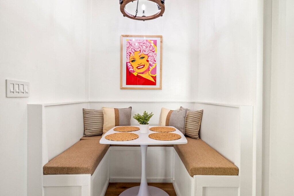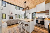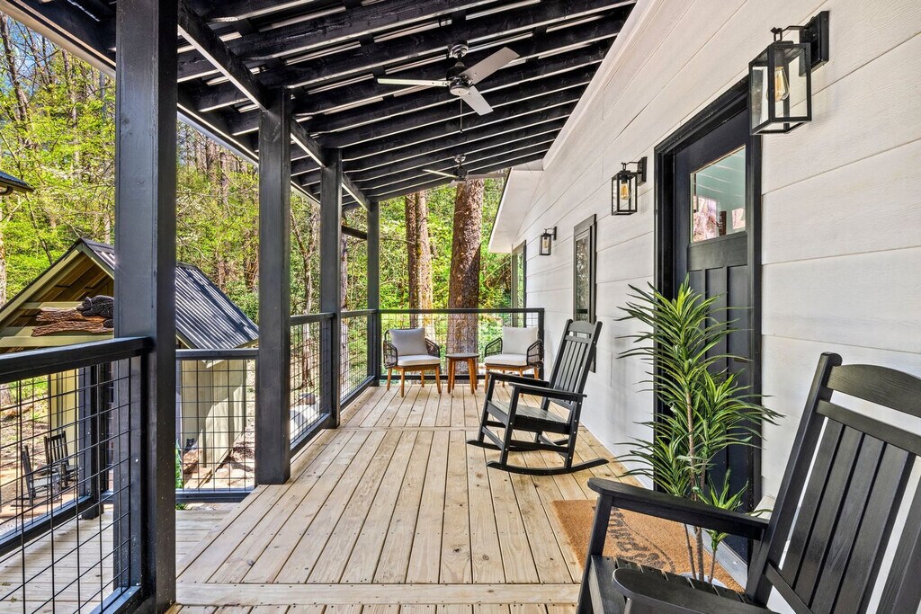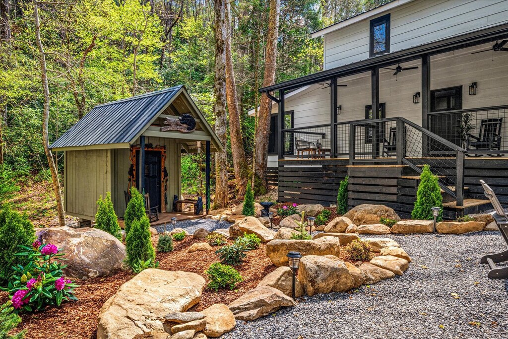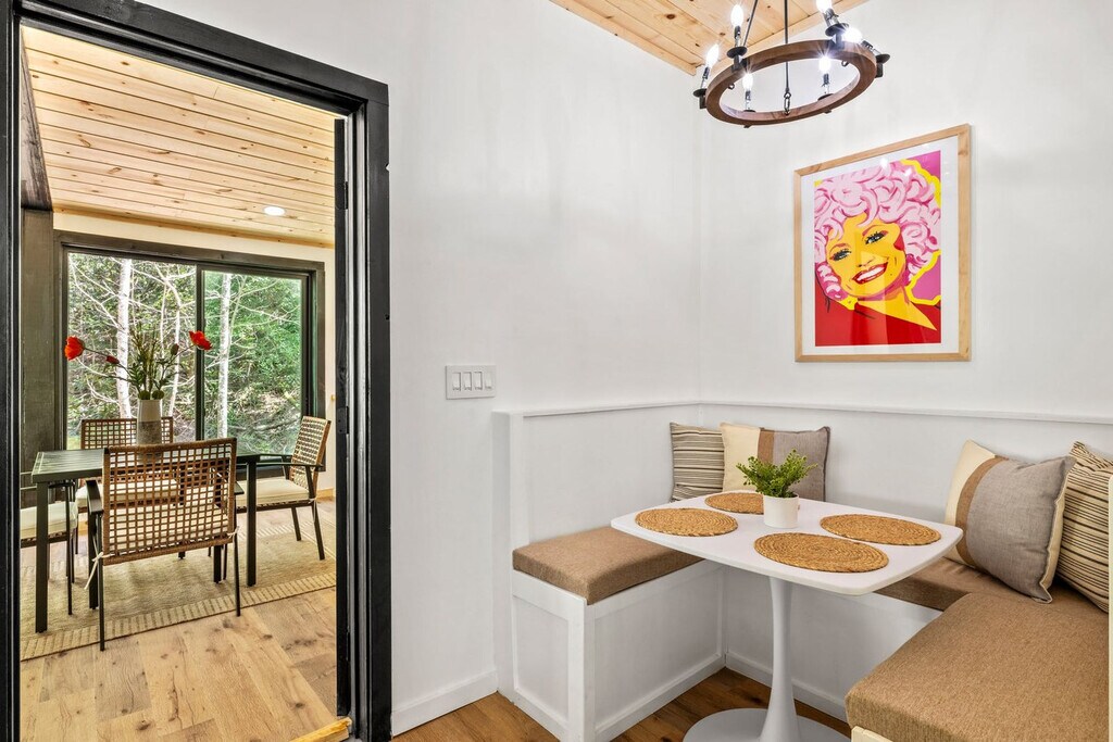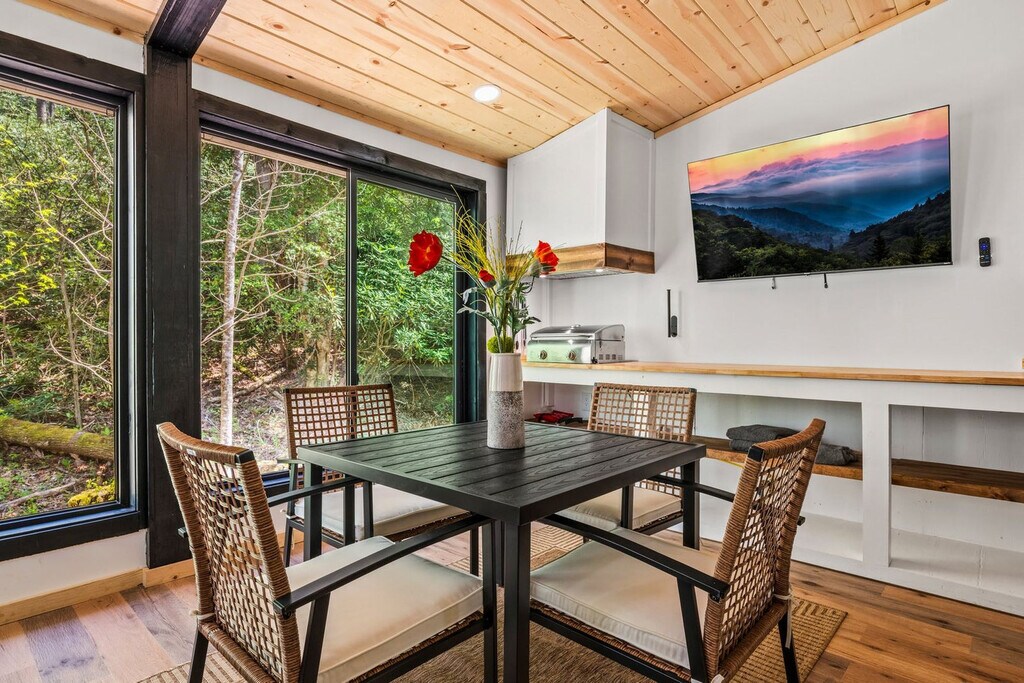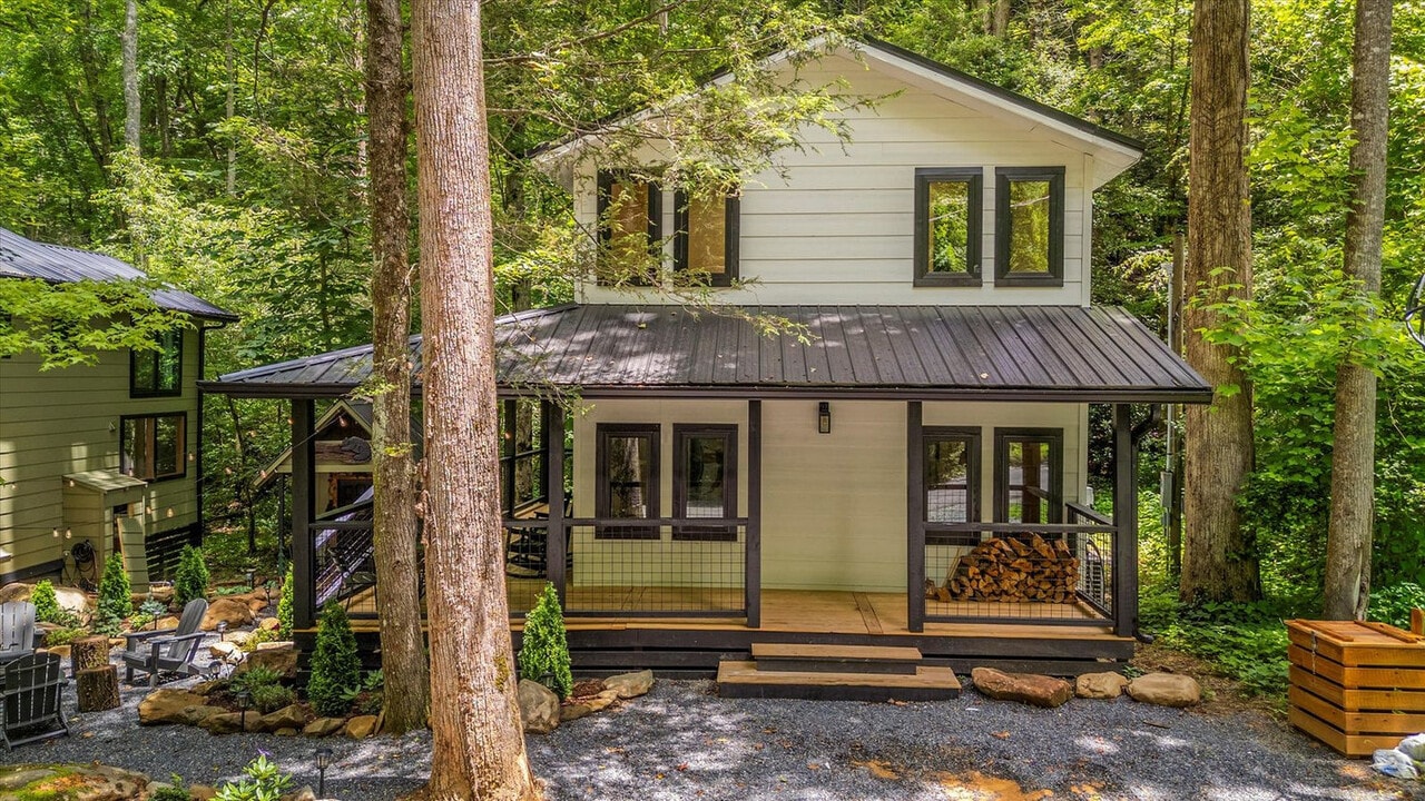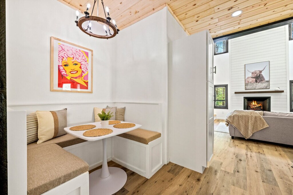 Feel at home in this 927 sq ft custom-built cabin, a Dolly Parton-inspired dream full of Smoky Mountain magic. With a crisp white exterior, pastel touches, and bright wood interiors, it’s bursting with charm and natural light. This cabin is a 1-minute walk to a Smoky Mountain National Park trailhead and 25 minutes to Gatlinburg. This cabin features an open-concept living room with bright windows and comfy seating, a fully equipped chef's kitchen, a built-in breakfast nook, and a half bathroom. The sunroom includes a private hot tub, floor-to-ceiling windows, a dining table, smart TV, and a grilling station. Upstairs, you’ll find the spacious master suite with a plush king-size bed, a second smart TV, and an en suite bathroom with a walk-in shower. Outside, relax on the front porch in classic Smoky Mountain style with rocking chairs and peaceful views. Guests also have access to a shared outdoor fire pit area and a charming kids’ playhouse just a short stroll away. Reliable Wi-Fi and a washer and dryer are available. Pets are welcome with a $100 fee and includes a custom-built dog cubby. An electric vehicle charger is available for your convenience. Firewood is provided for the outdoor fire pit area. Nestled in the serene community of Cosby, TN, this cabin offers a tranquil retreat away from the city's hustle and bustle. Just a 1-minute drive brings you to the Maddron Bald Trailhead in the Great Smoky Mountains National Park, providing easy access to scenic hikes like the Albright Grove Loop and Hen Wallow Falls. Downtown Gatlinburg is only 25 minutes away, but you can also enjoy local dining and activities without venturing far. Local dining options include Carver’s Orchard & Applehouse Restaurant, Janice’s Diner, Doc’s 321 Café, and Mountain View Pizza & Ice Cream. Whitewater rafting on the Pigeon River and mountaintop zipline adventures are nearby. Quiet hours are between 10:00 PM and 6:00 AM. Parties or events are not allowed without prior authorization. [SI]