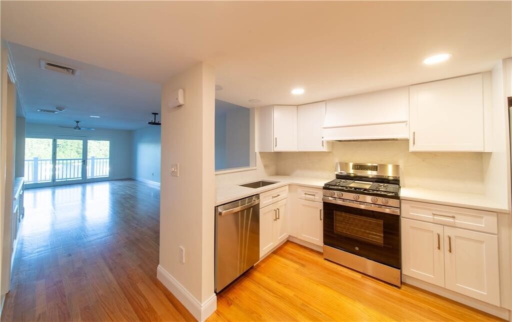 Waterfront rental opportunity in Downtown East Greenwich! Enjoy the Coastal lifestyle of Rhode Island and the in town walkable lifestyle to Main St East Greenwich! Harbour Heights Landing includes your own pool to enjoy in the summer months,a large 1 car garage for your car or storage,a BRAND NEW kitchen,fresh hardwoods,new paint etc. Wonderful opportunity to live in picturesque setting with unobstructed views of Greenwich Bay and Goddard Park. Dock or launch your boat within walking distance. This is a rare opportunity to enjoy a newly renovated condominium in an exclusive location with nothing to do but move in.