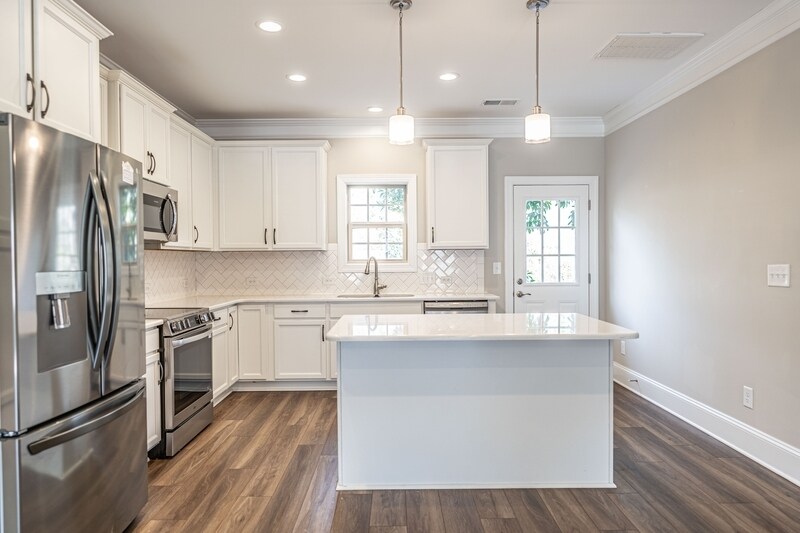 Welcome to this brick townhome in Pinehurst, built in 2023 and thoughtfully designed for modern living. Offering 3 bedrooms, 2.5 bathrooms, and a spacious bonus room, this home combines style, quality, and everyday functionality in a convenient Pinehurst location. The first floor features an open-concept living layout centered around a light, modern kitchen with stainless steel appliances and high-end finishes, perfect for both everyday living and entertaining. The primary bedroom is conveniently located on the main level and includes two closets, one of which is a custom-designed closet. The ensuite bathroom features a walk-in shower and double vanities, creating a clean, spa-like retreat. There is a washer and dryer located on the first floor. Already have a washer and dryer? There is a laundry room on the second floor for a second set! Upstairs, you'll find two additional bedrooms, a full bathroom with double vanities, and a large bonus room that offers flexible space for a home office, media room, or guest area. Outside, enjoy a private back deck that backs up to wooded views, providing a peaceful setting and added privacy. This well-appointed townhome offers low-maintenance living with modern finishes in a conveniently located Pinehurst community. This home is available for immediate move-in and is pet friendly.