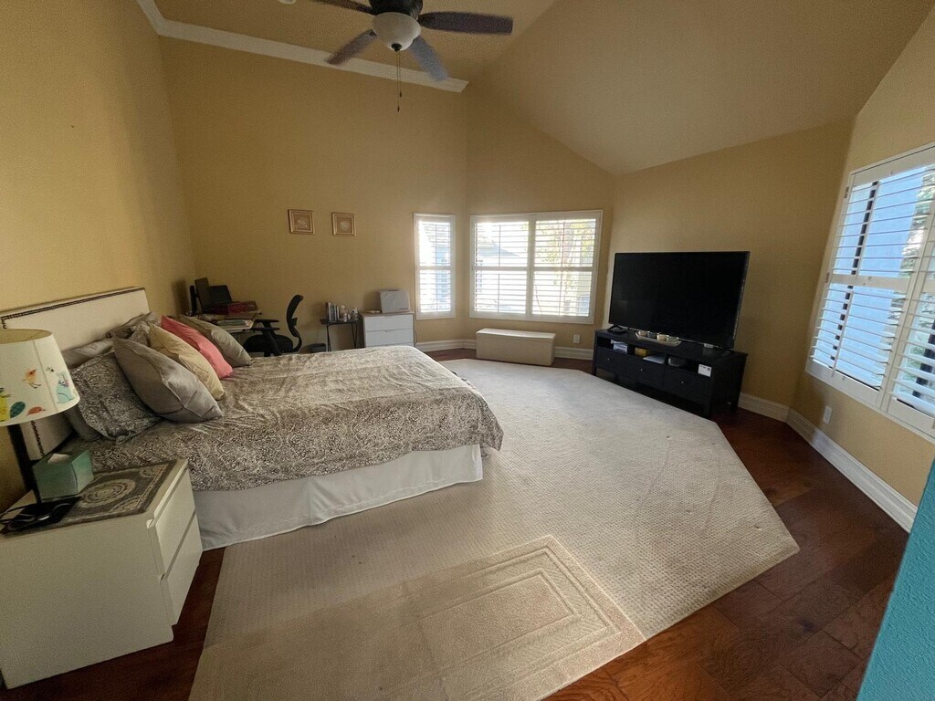 Available November 1, 2025: Gorgeous 3-story 1683 sf executive condominium in the Hills of Orange- 2 bedrooms, 2.5 baths, 2 car attached garage- large balcony for private BBQs/parties- indoor laundry space. Water, trash, and exterior maintenance included. On the lower level, a bright and spacious living room with a towering ceiling and a fireplace- sliding doors leading to a patio and a scenic view. On the middle level, a cozy family room- a formal dining place- a charming breakfast nook- and a remodeled kitchen with newly painted cabinets and granite counter tops. On the top level, a spacious primary bedroom with a skylight, a large walk-in closet, and a private bath- the second bedroom has a private bath too. Throughout the house, hardwood flooring- large windows with plantation shutters- plenty of storage spaces- ceiling fans and recessed lighting. Enjoy year-round heated pools, a clubhouse, BBQ areas, and lush landscaping with nearby hiking trails. Minutes from shopping, dining, and parks. Prime location with 55 freeway minutes away. A short drive to Orange Unified School District's award-winning schools.