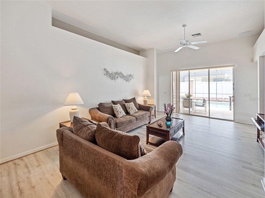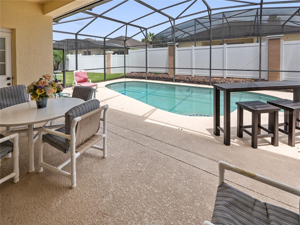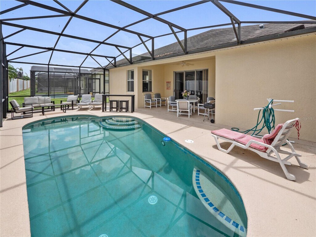 This beautifully maintained pool home is perfect as a full-time residence for you and your family. Located in the desirable Calabay Parc community in the Four Corners area of Davenport, this spacious residence boasts 4 bedrooms and 3 bathrooms, offering ample space for comfortable living. Step inside to discover a recently updated living room adorned with new vinyl flooring, providing a fresh and inviting atmosphere. The well-proportioned living space seamlessly connects to the fully screened pool deck, complete with a covered lanai for outdoor relaxation and entertainment. Privacy is paramount with a fence running along the back of the property, ensuring tranquility while enjoying the pool area. The A/C unit installed in July 2020 comes with a 10-year warranty, ensuring your comfort for years to come. As a bonus, this home is zoned for Four Corners Charter School, making it an ideal choice for families. Its prime location offers easy access to the Champions Gate area, Interstate 4, and Hwy 192, allowing for convenient commutes to Orlando and nearby attractions, including theme parks, shopping centers, restaurants, and golf courses. Just outside the community, a mere 10-minute walk away, a new plaza with conveniences like a 7-Eleven and a Starbucks already running, with more retail options on the way. Inside, the fully equipped kitchen boasts a well-sized dining area, perfect for hosting family meals and gatherings. Retreat to the master bedroom featuring an en-suite bathroom with a tub, separate shower stall, and double sink, offering a luxurious escape after a long day. The second master en-suite has been fully remodeled, boasting a new shower and furniture, while the third bathroom follows suit with its updated style. Don't miss out on the opportunity to call this beautifully appointed rental home yours!!Schedule a viewing today and envision the lifestyle awaiting you in this sought-after community. This home features solar panel that help keep the electric bill very low, averaging around $30/month.