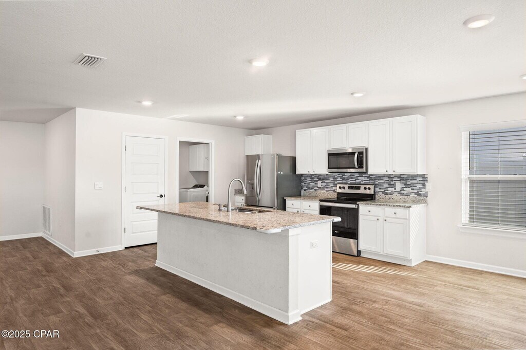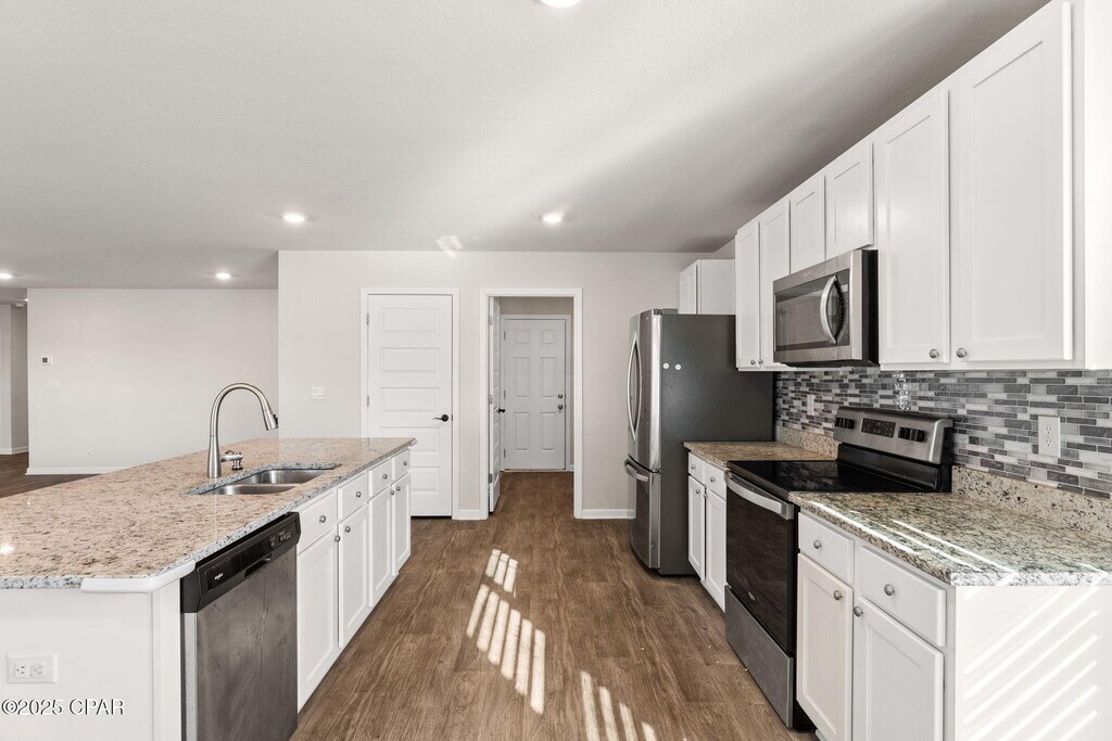 Welcome to Bridge Harbor--just minutes from shopping, dining, and Tyndall AFB. This stunning pet-friendly 5-bedroom, 3-bath home features a 2-car garage and a thoughtfully designed open-concept layout that's perfect for everyday living and entertaining.Inside, you'll love the granite countertops in the kitchen and baths with over-mount sinks, 8-foot ceilings, and beautiful ivory-painted cabinetry. Vinyl flooring runs throughout the main living areas, while plush carpet in all bedrooms adds extra comfort. The kitchen is fully equipped with Whirlpool stainless steel appliances, including a freestanding electric range, dishwasher, and microwave.Residents of Bridge Harbor also enjoy a community swimming pool, scenic walking paths, and a short stroll to the bay--ideal for morning walks and sunset views.