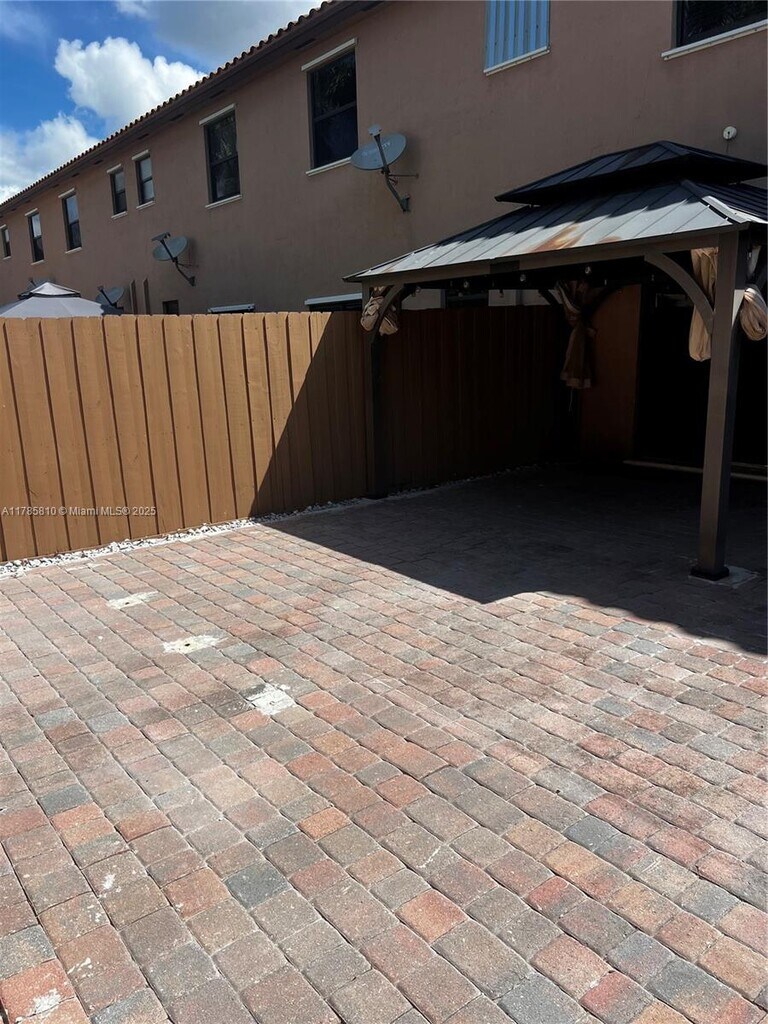 Townhouse in the Chateau Community at Vineyard. A spacious 4 rooms, 3 bath with one bedroom and a full bathroom downstairs. First floor with tile and laminated wood in stairs and second floor. Large fenced yard with pavers and an aluminum gazebo great for entertaining. Gated community with access to the Clubhouse's amenities: pool, kids water park, gym, park. Centrally located in the growing area of Homestead. Very close to shopping centers, supermarkets, excellent schools, hospital, healthcare facilities, restaurants, and main highways.