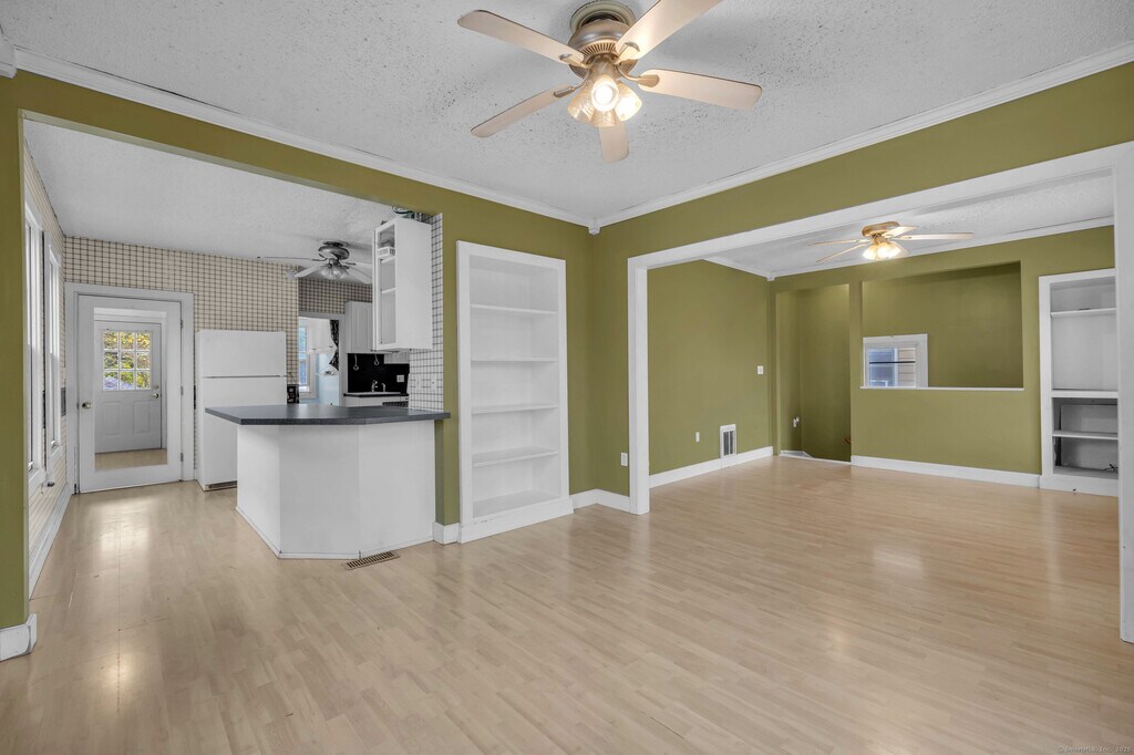 Call for Availability - Spacious and full of natural light, this second and third-floor apartment offers a flexible multi-level layout right in the heart of Manchester. The main level features a large open-concept living and dining area with ceiling fans, built-ins, and plenty of windows that create a bright, airy feel. A door from the main living space opens to a private balcony-perfect for enjoying fresh air above the bustle of West Center Street. The kitchen offers ample cabinet and counter space along with a peninsula that opens to the dining area, making it great for both meal prep and entertaining. The third floor includes the home's third bedroom, providing extra privacy or the perfect setup for a guest room or office. Laundry hookups are conveniently located in the unit, and the apartment is currently undergoing remodeling to enhance comfort and modernize the space. Situated on a main road for easy access to local shops, restaurants, and major routes, this apartment combines convenience, space, and charm in a prime Manchester location. MLS# 24131957