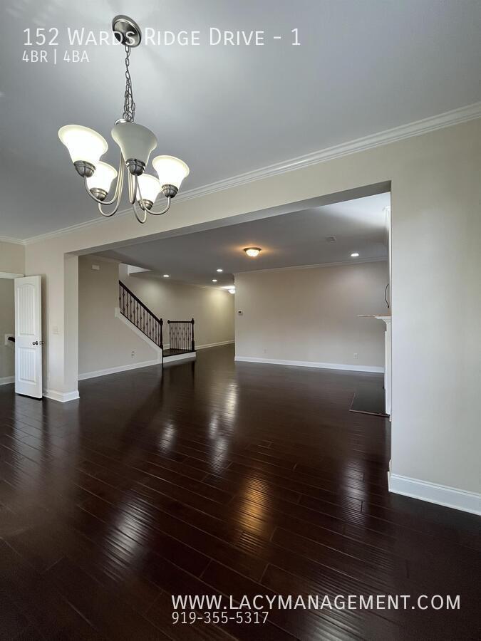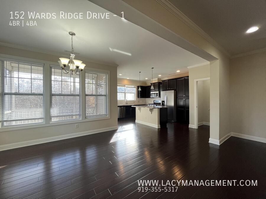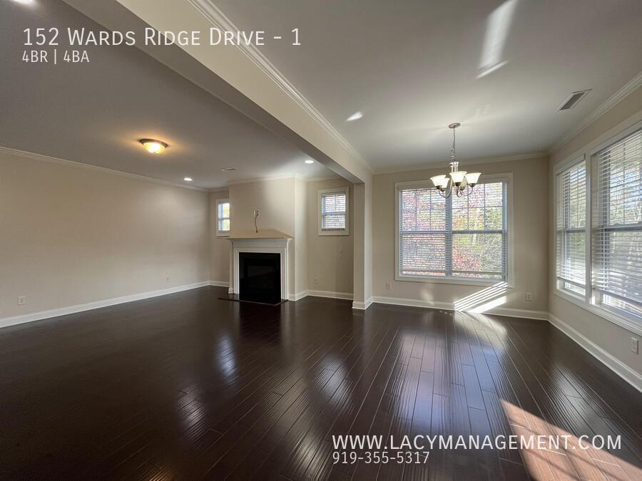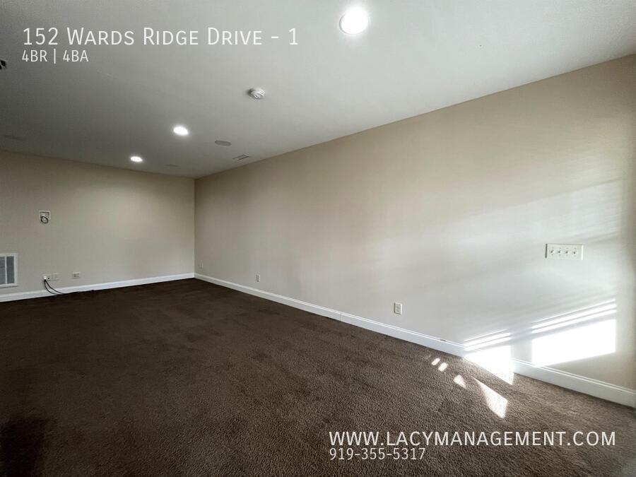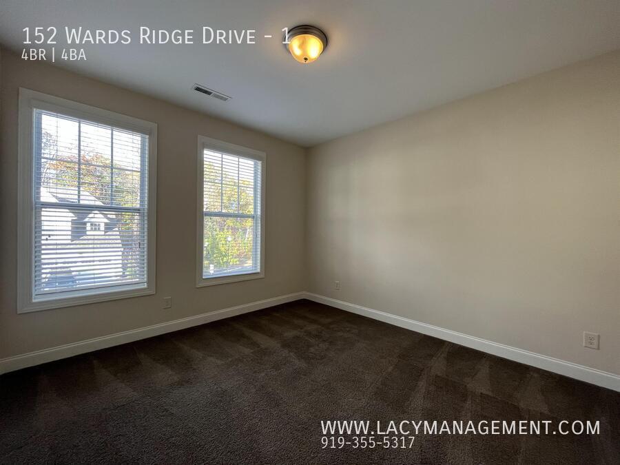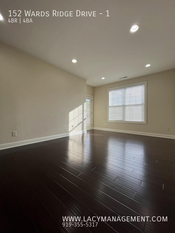 Welcome to your new home at 152 Wards Ridge Dr with 4-bedroom, 3.5-bathroom and spanning across 3290 sqft modern luxury living with 2-car garage Residential Condo/Townhome in Harrison Bluff community, where parking will never be a problem. This home combines luxury, comfort, and convenience. Gorgeous end-unit townhome in the popular Harrison Bluff community, under 5 minutes from downtown Cary. Enter into the spacious main living area upgraded with hand-scrapped hardwood floors throughout the 1st floor. Custom upgrades and expansive windows fill the home with natural light. Features include a gourmet kitchen with granite, a gas cooktop, and stainless-steel appliances. Huge master bedroom with walk-in closet and balcony. Finished basement with plenty of areas to entertain and 4th bedroom with full bath. Attached is a 2-car garage with plenty of storage. List of nearby schools are Reedy Creek Elementary, Reedy Creek Middle and Cary High List of nearby hospitals are WakeMed Cary Hospital and North carolina hospital Schedule a showing online at . Submit an application online at Resident Benefits: **Get over $100 in monthly benefits for just $49.95 with our Resident Benefits Package! Enjoy valuable services with the flexibility to customize or opt-out *** Application Criteria: a) Gross household income of at least 3 times the rent b) A credit score of 650+ is preferred; we are happy to discuss your situation if your credit score is lower c) No evictions in the last 5 years d) A one-time pet fee of $300 per pet applies. An additional deposit may be required for multiple pets. No monthly pet fee; pet screening is required after application approval: $30 per pet. e) One-time admin fee of $250 required to pay after signing the lease