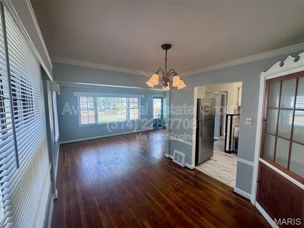 Oversized 2 bedroom, 1 bath home nestled in Bellefontaine Neighbors! This spacious single family home offers 1000+ sqft of living space. The interior has been freshly painted and the kitchen floors have been updated with ceramic tile. There's original hardwood floors in the living/dining rooms and bedrooms. Adjacent the kitchen is a large carpeted family room. The full basement offer plenty of storage and a small rec area. A completely fenced backyard with both grass, expended concrete patio and entrance to the one car garage make up the rear of the house. All located Off 367, less than a mile from Highway 270 on a quiet street. By submitting your information on this page you consent to being contacted by the Property Manager and RentEngine via SMS, phone, or email.