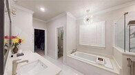 Beautiful custom home on cul-de-sac in quiet neighborhood. Clean white kitchen with custom cabinets, large island and quartz countertops, gas cooktop, combination convection oven and oversized pantry. Master suite has a vaulted ceiling and his and hers vanities, plus a large walk-in closet with Elfa closet system. There is an office near the front door. Each secondary bedroom has its own bath, and there is a second living area upstairs. Bonus features include 2 water heaters, foam insulation, efficient HVAC, and rear entry garage with epoxy floor.