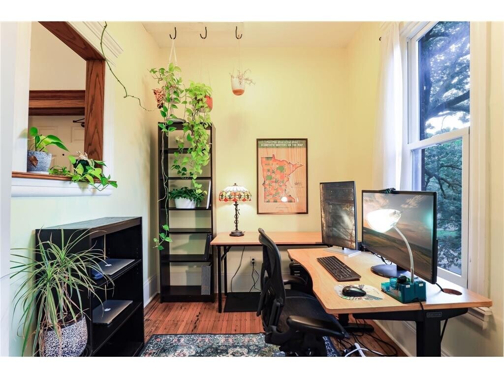 Short term rental available near downtown Minneapolis. Available now. Partially furnished. Two bedrooms, two bathrooms, multiple home office spaces, laundry in-unit, secured entry, shared garage stall with unit. Fireplace not usable per HOA rules. Tenant pays for their own gas and internet. Snow and lawn is a shared responsibility with all the units so tenant may be asked to shovel once in awhile.