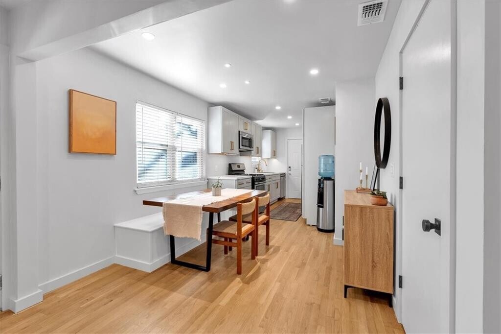 Welcome to this charming craftsman in the heart of sought-after Edgewood! Tucked away on a peaceful,tree-lined street,this home blends vintage charm with modern flair. Just a short stroll from Edgewood's buzzing shops,dining,and public transit,you'll love the perfect mix of convenience and community vibes here. Start your mornings,or unwind at sunset,on the spacious rocking chair front porch—ideal for people-watching and savoring quiet moments. Step inside to an airy,sun-soaked open-concept living space with gleaming hardwood floors designed for both relaxing and entertaining. The living room offers plenty of space for your entertainment setup,flowing seamlessly into the cozy breakfast nook,complete with a built-in bench for morning coffee or casual meals. The beautifully updated kitchen shines with new cabinetry,sleek appliances,and a smart layout perfect for hosting and everyday living. The back half of the home has been thoughtfully renovated,featuring two spacious guest bedrooms and a fresh,modern bathroom with stylish fixtures. When you're ready to retreat,the sun-filled primary suite offers a true haven. Custom barn doors open into the spa-like en-suite,boasting a double vanity,large tiled shower,heated floors and a dreamy custom walk-in closet for all your storage needs. Step outside to your private,fully fenced backyard—perfect for BBQs,playtime,or unwinding under the stars. Don’t miss the parking pad accessed by an electric gate and a large storage shed making organization a breeze,whether you're storing tools,outdoor gear,or your next DIY project supplies. Just a short bike ride to Inman Park MARTA,this Edgewood gem blends classic craftsmanship with today’s comforts including new HVAC and tankless water heater,making it the ultimate cozy retreat in a vibrant,welcoming neighborhood.