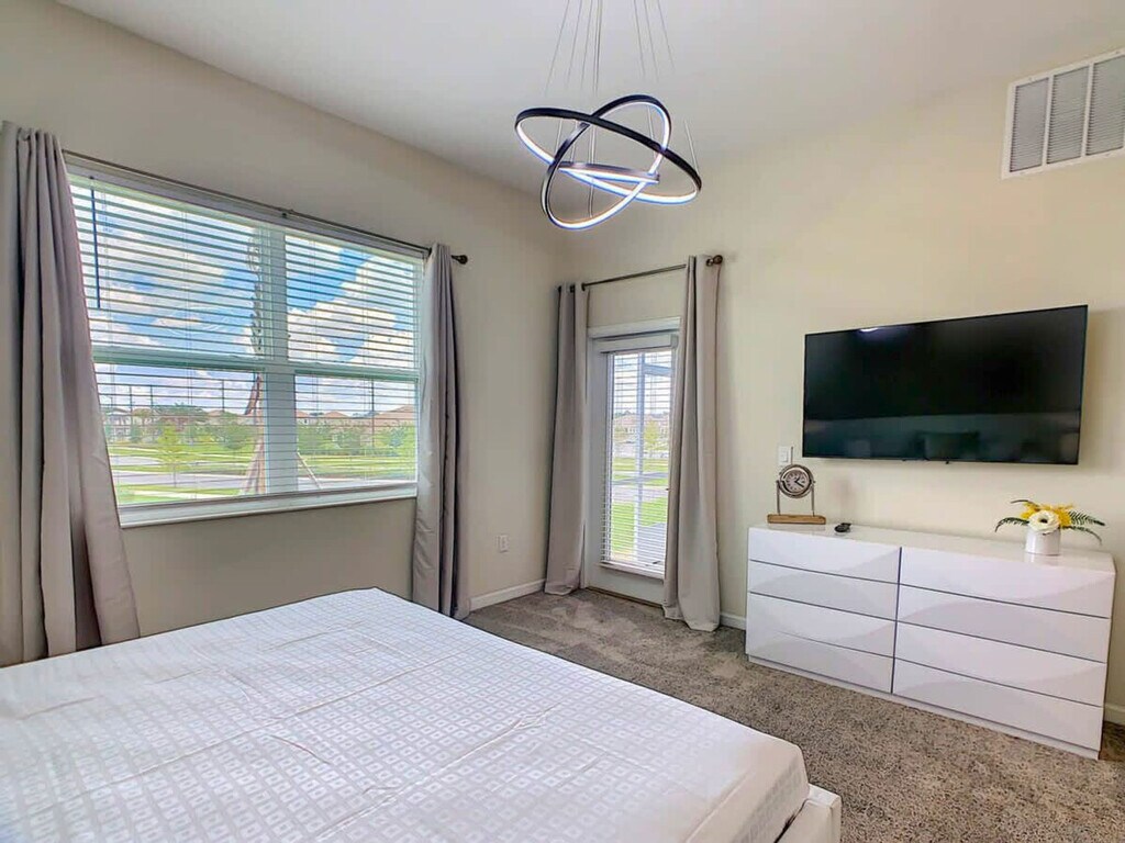 Experience the thrill of the new Epic Universe park this May 22nd by staying at this spacious vacation condo at Champions Gate, designed with the sun of Florida and the magic of Walt Disney World in mind. This elegant property offers a premium location just minutes away from Walt Disney World Resort, making it an excellent choice for a family vacation. The condo features a fully equipped kitchen, air conditioning, and a king-size bed in the master bedroom, ensuring you feel at home. Enjoy full complimentary access to the resort's amenities, including a gym, heated swimming pools, a lazy river, and a water park. The main clubhouse, Oasis Club, is just a 7-minute drive away and offers a variety of facilities such as a spa center, golf, and a restaurant, some of which may incur additional fees. The condo itself is equipped with three smart TVs, a washer/dryer, and high-speed internet, providing all the comforts you need for a relaxing stay. Guests can enjoy free parking and unlimited access to two luxury clubhouses. Additional services such as a spa center, golf, and restaurant facilities are available for an extra fee. Optional services like a pack and play, high chair, early check-in, and late check-out are also offered at an additional cost. Located in Champions Gate, this condo is perfectly situated for exploring nearby attractions. Walt Disney World Magic Kingdom is only 14 miles away, while Universal Studios and Sea World are 22 and 18 miles away, respectively. For shopping, Ross Dress for Less and Sephora are within 8 miles, and Publix grocery store is just 1.5 miles away. Transportation options include Uber and Lyft, making it easy to get around. Guests must be at least 18 years old to book a reservation. No unregistered guests, smoking, or pets are allowed inside the condo. The property is exclusively for vacation use and does not permit filming without prior authorization. A safety protocol is in place to ensure the well-being of guests and staff, and the property is keyless with a code provided prior to check-in. Be aware that there are ongoing repairs in the property area, and guests are requested to be understanding in their reviews. [SI]