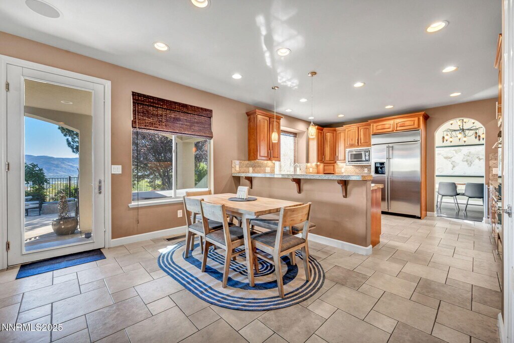 This fully furnished home offers a private sanctuary tucked away at the end of a quiet cul-de-sac in Reno. Surrounded by mature landscaping and set in a park-like setting,it invites you to slow down,breathe in,and relax to the max. After a long day,unwind in your private hot tub,perfectly nestled among trees and greenery for total privacy. Inside,warm tones and high-end finishes create a welcoming atmosphere,highlighted by a gourmet kitchen featuring a KitchenAid downdraft gas cooktop,double ovens,and an extra-large Monogram refrigerator — perfect for anyone who loves to cook and entertain. Upstairs,you'll find three spacious bedrooms,including a primary suite with his-and-her closets and a serene retreat-like feel. Cathedral ceilings and expansive windows fill the home with natural light,and you'll never need to close the blinds thanks to the exceptional privacy of the lot. A three-car garage offers plenty of storage,with additional side parking for a boat or RV. The location is spectacular — shopping and dining are just 10 minutes away,Mount Rose Ski Resort is only 10 minutes from your door,and both Lake Tahoe and downtown Reno can be reached in about 30 minutes. The airport is also just 30 minutes away,making travel effortless. Blending comfort,elegance,and tranquility,this fully furnished home is a true Reno sanctuary — designed for those who appreciate refined living in a peaceful,convenient setting. MLS# 250056961