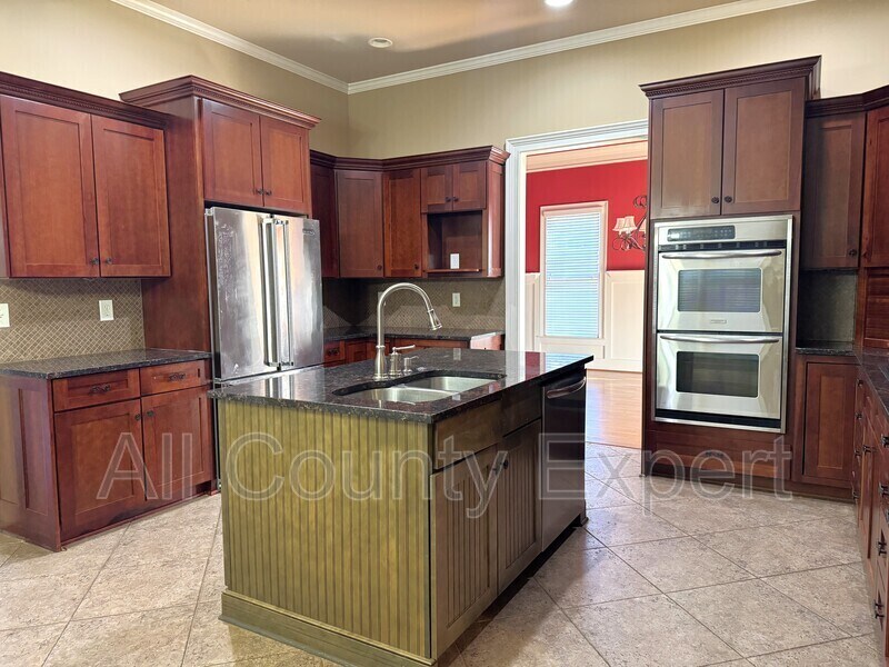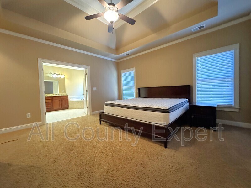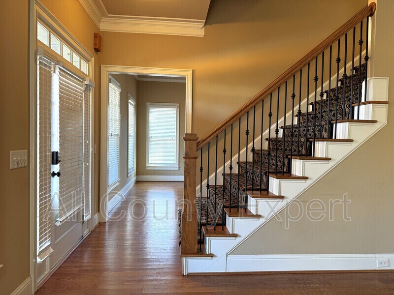 This beautifully designed and generously sized home offers a thoughtful floor plan, high-end finishes, and multiple flexible living spaces—ideal for comfortable everyday living and entertaining. A large, covered flagstone front porch welcomes you inside, where you’re greeted by an extra-wide staircase and hardwood floors throughout the main level. To the right of the foyer is a warm and inviting family room featuring a gas fireplace with built-in cabinetry, perfect for relaxing or hosting guests. The heart of the home is the expansive kitchen, showcasing rich cabinetry, granite countertops, a large center island with sink, stainless steel appliances, and abundant storage. The kitchen opens to a spacious eat-in area, making it ideal for casual dining, and includes a large walk-in pantry. Off the kitchen is the formal dining room, which features a striking two-sided gas fireplace shared with the formal living room or office. A butler’s pantry connects the formal dining room and the living room, adding functionality and elegance to the space. From the dining room, there is access to a covered back patio, perfect for outdoor entertaining or quiet evenings. The main level is completed by a half bath, mudroom, and direct access to the 2-car garage. Upstairs, the oversized primary suite features tray ceilings and a spa-like en suite bath with double vanities, a large jetted soaking tub, and a separate walk-in shower. The primary closet opens into an additional large bonus room, ideal for a home office, gym, or private retreat. The upper level also includes three additional bedrooms—one with a private en-suite bath, another with direct access to a shared hall bath—as well as a conveniently located second-floor laundry room.