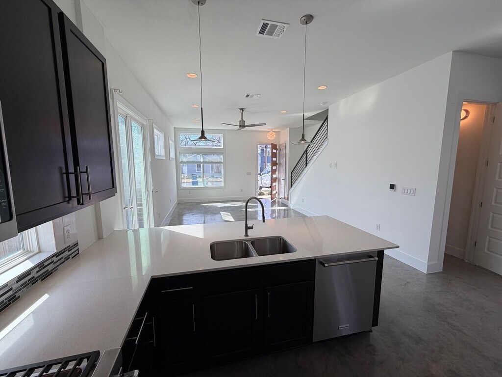 Now Available for Lease — First Time Ever Leased Be the first tenant to live in this stunning, freestanding modern home at 1520 W St Johns Ave, Unit A, offered for lease at $3,495 per month. This thoughtfully designed 1,808 SF residence lives like a single-family home and features 3 bedrooms and 2.5 bathrooms with high-end finishes throughout. The open-concept main level showcases a sleek, contemporary kitchen with quartz countertops, custom cabinetry, stainless steel appliances, and a large center island—perfect for everyday living and entertaining. Floor-to-ceiling windows and clean modern lines fill the space with natural light, creating a bright and inviting atmosphere. Upstairs, generously sized bedrooms feature vaulted ceilings, modern ceiling fans, and abundant natural light. The primary suite includes a spa-inspired bathroom with a double vanity and walk-in glass shower. Secondary bedrooms are well-proportioned and ideal for guests, home office, or flexible living needs. Additional highlights include polished concrete and carpet flooring, designer lighting, private outdoor space, and modern construction throughout. Located just minutes from The Domain, Q2 Stadium, major employers, dining, and transit corridors, this home offers the perfect balance of style, comfort, and convenience. $3,495/month | 3 Bed | 2.5 Bath | 1,808 SF First time ever leased — don’t miss this rare opportunity.