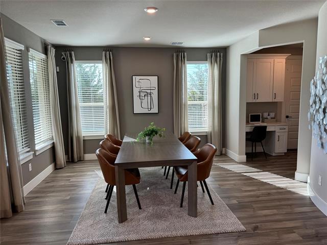 Former Meritage model home. Fully furnished in Frontier Estates. Prosper schools. 6 beds 4 and a half bath 3 car garage. Down stairs features an office that could also be a bedroom, living room, dining room, breakfast area, eat in area, laundry, mud room and a study area. Also down is the primary bedroom and a guest bedroom with a bathroom. Upstairs features a media and game room and three beds including two that have a jack in jill bath. The split 3 car garage has epoxy flooring. Endless upgrades throughout the home. Landscaped front and back. Relax on the back porch to the sound of the community pond and fountain.