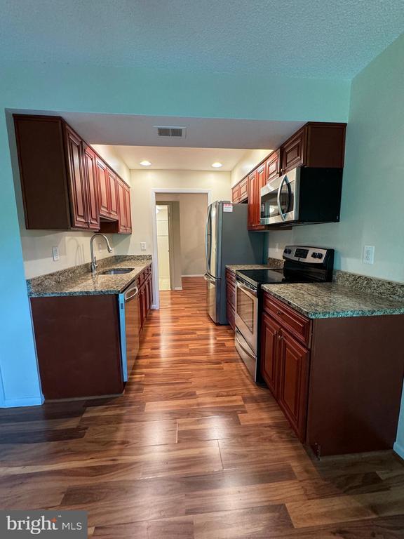 Fantastic 3rd-floor 2-bedroom condo featuring cathedral ceilings that create a bright, open feel throughout. Beautiful luxury vinyl plank flooring flows seamlessly through the main living areas, complementing the upgraded kitchen. The kitchen offers granite countertops, stainless steel appliances, built-in microwave, and ample cabinetry—perfect for both everyday living and entertaining. Enjoy peaceful views and added privacy from the top-floor location on the screened in porch. along with abundant natural light. Located in the highly desirable retirement community of Leisure World, residents enjoy a gated entrance, clubhouse, fitness center, indoor/outdoor pools, golf course, walking paths, and a wide variety of social activities and amenities designed for active adult living. Applicants must complete the GCAAR lease application.