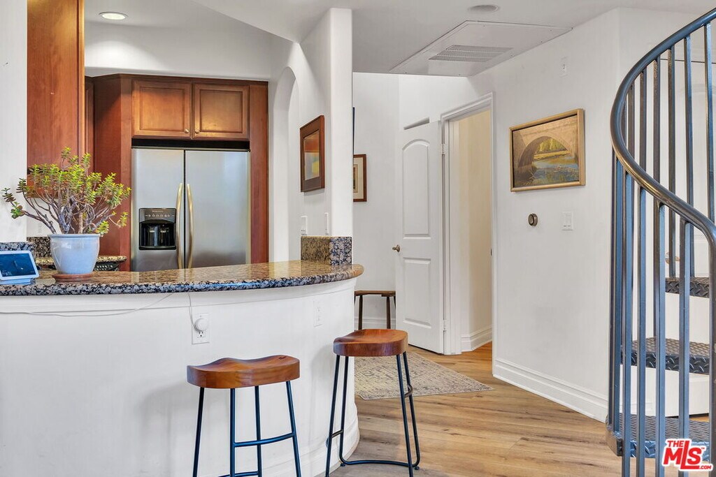 Welcome to Villa Trevi. Experience sophisticated urban living in this rare TOP FLOOR residence, where an open-concept layout and premium finishes create an inviting atmosphere of modern elegance. The heart of the home features a light-filled living area centered around a cozy fireplace flowing seamlessly onto a private balcony-perfect for morning coffee or evening relaxation. The gourmet kitchen is a chef's dream, meticulously appointed with granite countertops, stainless steel appliances and a versatile breakfast bar for casual dining. A stately spiral staircase leads to a second story loft with an additional private patio. The Primary suite serves as a tranquil retreat boasting a generous walk-in closet and an ensuite bathroom-featuring dual vanities, a soaking tub, and a glass-enclosed shower. The secondary bedroom is equally impressive offering ample full length closet with direct access to a full bathroom. For added convenience, a separate powder room serves guests and visitors. Villa Trevi offers a collection of amenities designed for comfort and security: Two courtyards featuring fountains, gas BBQ and stylish lounge seating. An expansive rooftop deck with panoramic vistas. Controlled access entry, elevator, and secure parking, with 2 tandem parking spots and electric car charger. Close to everything - the 405 freeway, Sherman Oaks Galleria, shopping and restaurants. MLS# 26654857