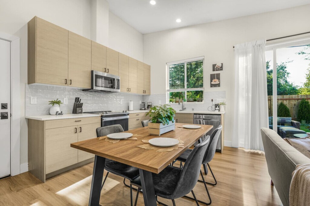 Feel at home in this memorable Vancouver home, freshly built for your short-term or mid-term stay. This home features a beautiful kitchen that merges with the living room, a full bathroom, and a huge, fully fenced backyard. It comes with a washer and dryer located in the garage. Many amenities are included, like streaming services, coffee, a park pass, and a fully stocked kitchen. A Pack ’n Play is provided for little ones to make travel easier and more comfortable. The garage, driveway, and street parking are all available. Tucked away in a peaceful, family-friendly neighborhood, this cozy, modern home offers the perfect space to relax, recharge, and create lasting memories. Enjoy being close to parks, schools, grocery stores, and some of Vancouver’s best local coffee spots, all just minutes away. You are located in the middle of a great neighborhood, surrounded by grocery stores, parks, and restaurants. This is a non-smoking home, and if you need to smoke, please do so outside, away from the house, and dispose of cigarette butts properly. Pets are not allowed. Parties are not allowed. Only guests listed on the original booking are permitted to stay overnight. [SI]