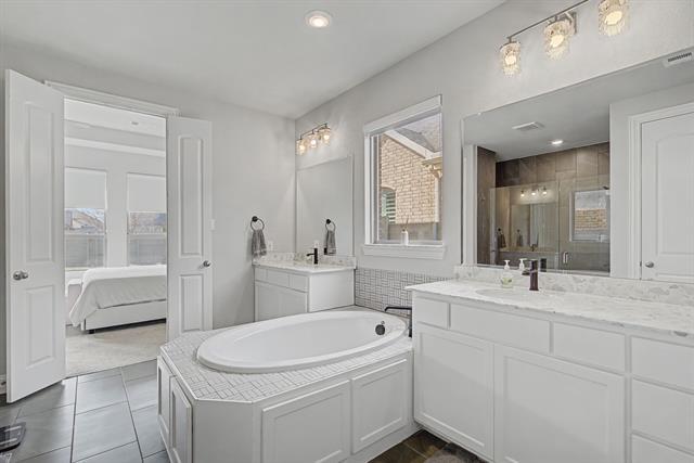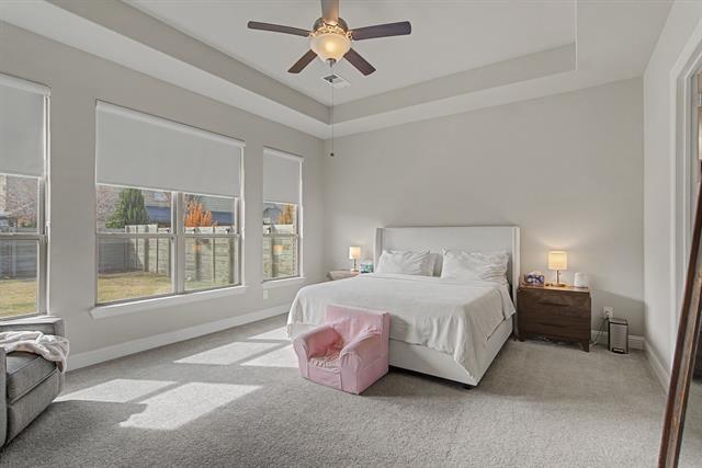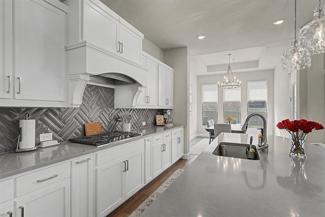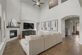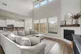 Welcome to luxury living in the award-winning Harvest community. This stunning 5-bedroom, 3-bathroom residence, built by Coventry Homes, perfectly blends modern sophistication with everyday functionality on an oversized 0.33-acre lot. From the moment you step through the grand foyer, you are greeted by soaring two-story ceilings and a wall of windows that floods the home with natural light. The heart of the home is a chef-inspired gourmet kitchen featuring a massive central island with seating, premium gas cooktop, built-in stainless appliances, and a spacious walk-in pantry. The open-concept design flows seamlessly into the expansive living area, anchored by a sleek fireplace—perfect for entertaining. The primary retreat, located on the main floor, offers a spa-like escape with tray ceilings and an ensuite bath featuring dual vanities, a deep garden tub, a separate walk-in shower with seating, and a massive walk-in closet. Upstairs, discover a versatile game room with a built-in workspace, ideal for a home office or student study hub, alongside well-appointed secondary bedrooms. Step outside to a covered patio overlooking a large, flat backyard—a blank canvas ready for a pool or outdoor kitchen. Situated on a premium 70-foot wide lot, this home offers rare privacy and curb appeal. Residents of Harvest enjoy world-class amenities including resort-style pools, a fitness center, organic community gardens, a coffee house, and miles of scenic trails.This is more than a house; it’s a lifestyle.
