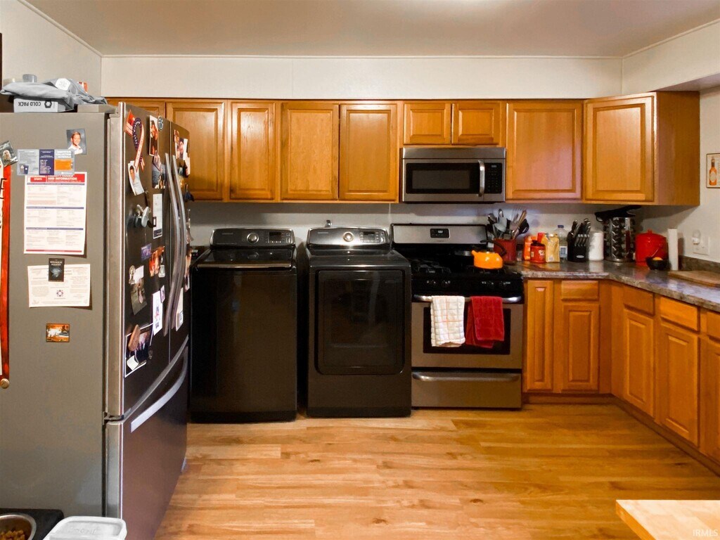 Updated 3 bedroom, 1.5 bath home. Features new stainless steel appliances, hard surface flooring throughout, with an updated A/C and a washer/dryer in unit. Large rec room plus attached garage offer plenty of storage space. Includes a small fenced-in backyard with patio. Located just south of campus- about 6 blocks from the Jacob's School of Music.