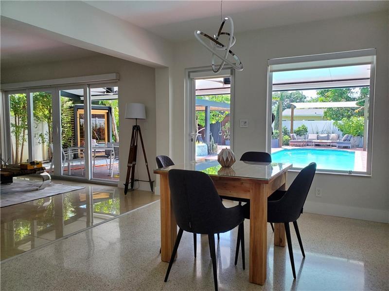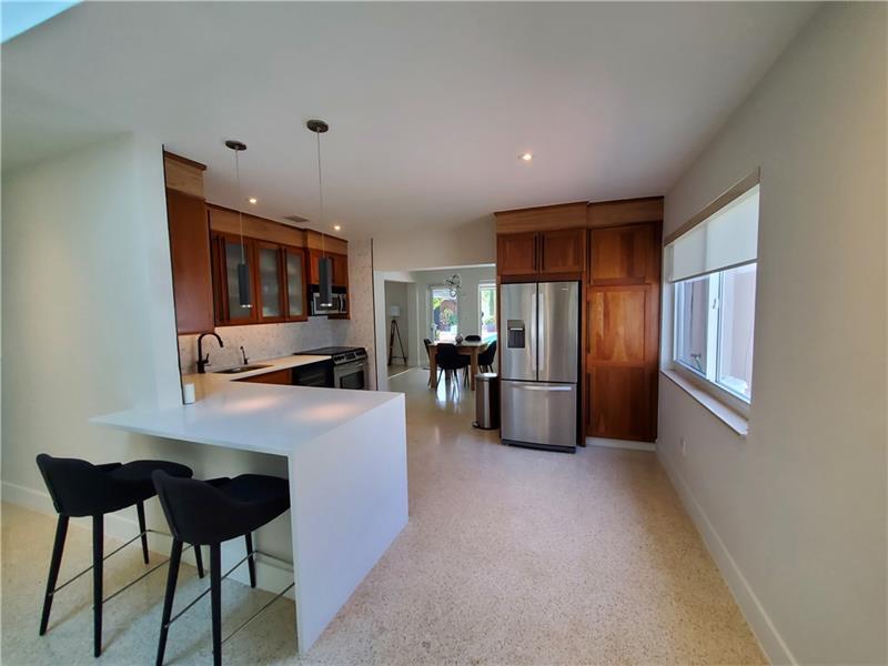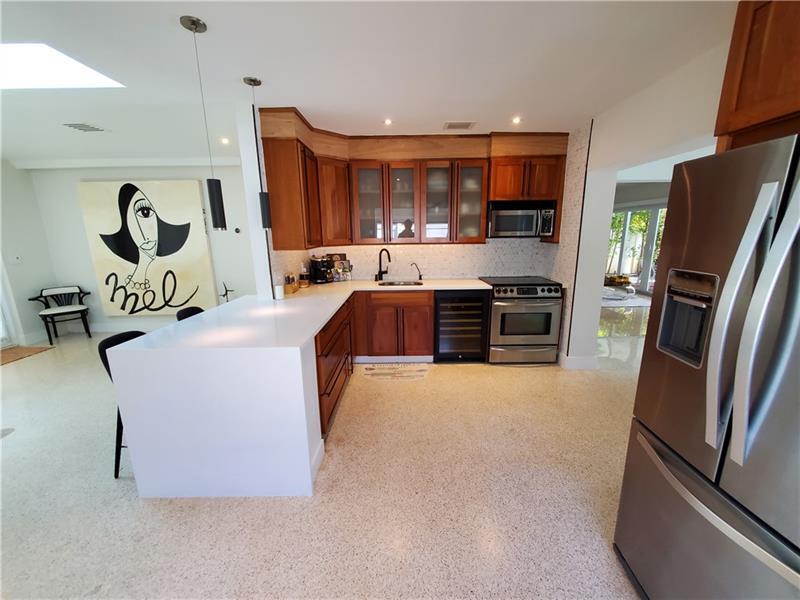 This stunning and completely remodeled 2/2 plus den home looks like something featured in a magazine. Located just minutes from Wilton Manors nightlife, downtown and the beach this open floorplan dazzler offers polished terrazzo and tile flooring, beautiful kitchen with cherry cabinets, impact windows, Master BR w/skylight, a den/office/3rd BR with custom closets and trim throughout. A spacious great room overlooks a magical resort like private back area featuring a gorgeous pool w/ lanai, custom covered outdoor kitchen and seating area for entertaining, a sauna and cold-water plunge pool, outdoor shower, custom lighting and landscaping and separate shed. Newly pavered front entrance! A beautiful setting to call home! Please noet the property is UNfurnished except for some outdoor things.