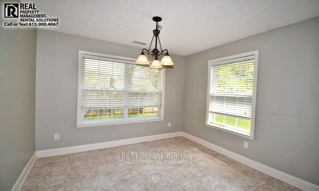 This amazing one-level home has beautiful real hardwood floors throughout, and a large living room with 14' vaulted ceiling and gas fireplace. Large master bedroom has extra sitting area and a bathroom with garden tub, separate shower, double vanity, water closet & walk-in closet. Attached 2 car garage! Nice covered back porch with patio and large fenced-in backyard. Gorgeous, lush lawn. Great location off St. Andrews Drive. See a video tour on our website. AVAILABLE NOW! Call RPM Rental Solutions at to schedule your private viewing of this wonderful home! Professionally managed by locally owned and operated RPM Rental Solutions, offering a tenant portal and easy online rent payments. View this home on our website at: Qualifications: Income 3x the rent; credit 600+,utilities can't be past due or in collections, good previous landlord references. Application fee: $50 per resident of the home who is 18 and over. No smoking inside premises. Renters insurance with personal liability coverage is required. Technology and onboarding fees may apply. Pet will be considered, max 40 lb. with non-refundable pet fee of $450 and $40/mo pet rent. Nearby schools: Scales Elementary School or Rockvale, Rockvale Middle and High School (verify school districts).