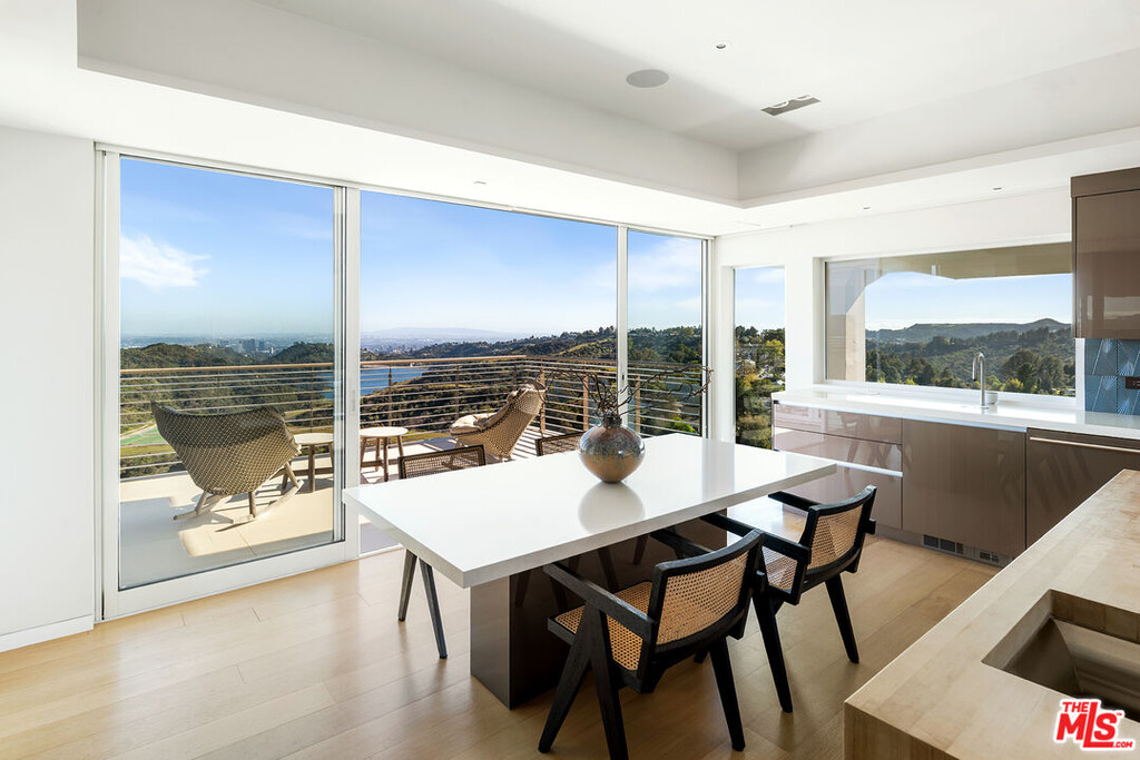 Originally designed in 1986 by renowned architect Ted Tanaka, this world-class architectural marvel underwent a five-year structural remodel and addition completed in 2021 under the direction of Clive and Julie Bridgewater, along with landscape architect Pamela Burton. Crafted for a young collector family seeking the ultimate modern view estate to showcase art in a family-oriented setting, it serves as a hub for major art installations and esteemed art-world gatherings. Tucked behind two sets of iron gates at the end of a long driveway within a cul-de-sac, this extraordinary private 3.2-acre knoll boasts uninterrupted city, ocean, and reservoir views, enveloping the estate in electrifying vistas from every room inside and outside. With a lit tennis court offering arguably the most breathtaking views in town, two elevators - one for the main home and one for the guest house, and outdoor events two kitchens, one for the main floor for intimate breakfasts and family meals, and another strategically positioned with walls of glass opening to the outdoor barbecue area, for family weekend fun and large-scale events. Additionally, a theater with wine room and soda fountain, game and billiard room. Within the sprawling flat grounds a spectacular oversized pool, full barbecue/pizza kitchen, as well as covered outdoor areas and decks throughout the property. This light-filled home embraces the love of art and family values, offering an unparalleled lifestyle experience. Available Furnished or Unfurnished. MLS# 25562853