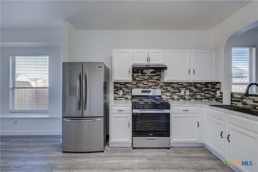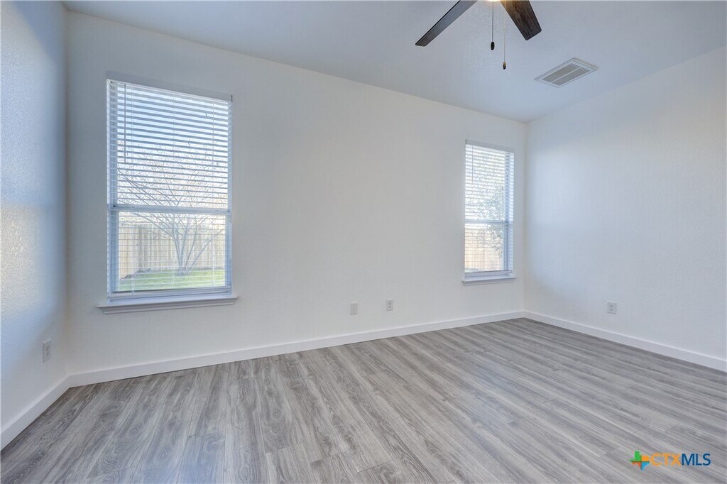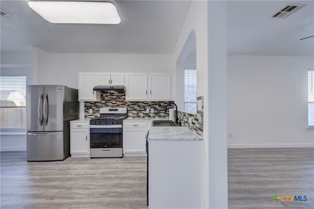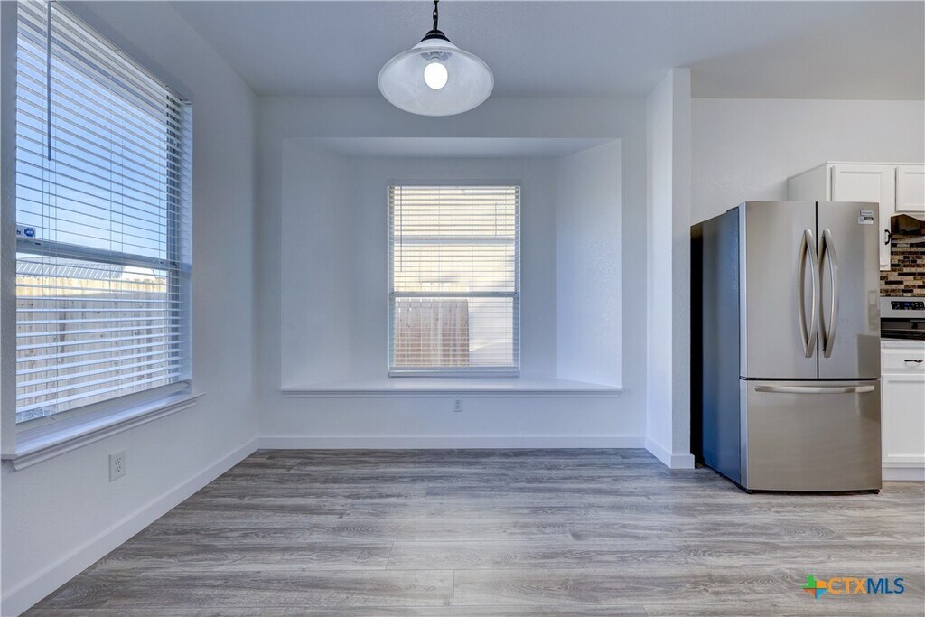 Welcome to this well-maintained 3-bedroom,2-bath home featuring high ceilings,decorative archways,a pass-through bar top,and a charming window seat in the breakfast area,creating a comfortable and functional living space. The home features vinyl plank flooring throughout with no carpet. The primary bedroom is positioned separately from the secondary bedrooms,offering added privacy. The kitchen includes light countertops,a sink,a spacious pantry,and a dedicated desk area—ideal for everyday organization or a home workspace. The refrigerator,clothes washer,and dryer convey with the property. Located in the Austin’s Colony community,residents have access to neighborhood amenities such as a community pool,basketball courts,nature trails,playscapes,and an amenity center. Conveniently situated approximately 11 miles from downtown Austin and about 5 miles from Austin-Bergstrom International Airport,providing access to major employers,dining,and entertainment. A must see!