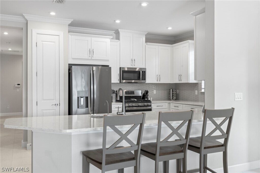 UNFURNISHED ANNUAL RENTAL ONLY. Experience refined Florida living in this newly built 3-bedroom + den villa in Esplanade by the Islands. This open-concept layout is full of upgrades including tile flooring,quartz countertops,and added LED lighting throughout. Enjoy cooking on your gas stovetop in one of the few natural gas communities in the area! Step outside to your private outdoor retreat featuring a sparkling pool and heated spa with beautiful water views — perfect for relaxing or entertaining year-round. With highly desired southwestern rear exposure,you’ll enjoy abundant natural light throughout the day and breathtaking Florida sunsets from your own lanai. Life at Esplanade feels like a permanent vacation. Residents enjoy a resort-style pool with private cabanas,a poolside Bahama Bar,a state-of-the-art fitness center with a full calendar of group classes,an on-site salon and spa,satellite pools,and a dedicated dog park — all within a vibrant,amenity-rich community. Ideally located just minutes from the pristine beaches of Marco Island,the natural beauty of the Everglades,and the world-class shopping and dining of 5th Avenue South in Naples,this villa offers the perfect blend of comfort,modern design,and effortless Florida living you’ve been dreaming of.