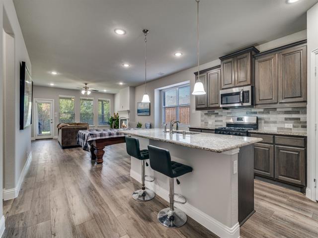 LOCATION, LOCATION,LOCATION this house is located close to schools, shopping, lake, and I-30 highway. Beautiful open floor plan. Spacious kitchen with Stainless Steel appliances, granite countertops, ceramic tile backsplash, and large island that open up to the dining and living areas. This home is on a beautiful street and backed up to a greenbelt. It will not disappoint! Right behind the new HEB coming up in Rockwall! Owners have a pet, they will need a two hour notice, please! Bonus: Is the large back covered patio that backs up to a greenbelt. Super nice, clean home.