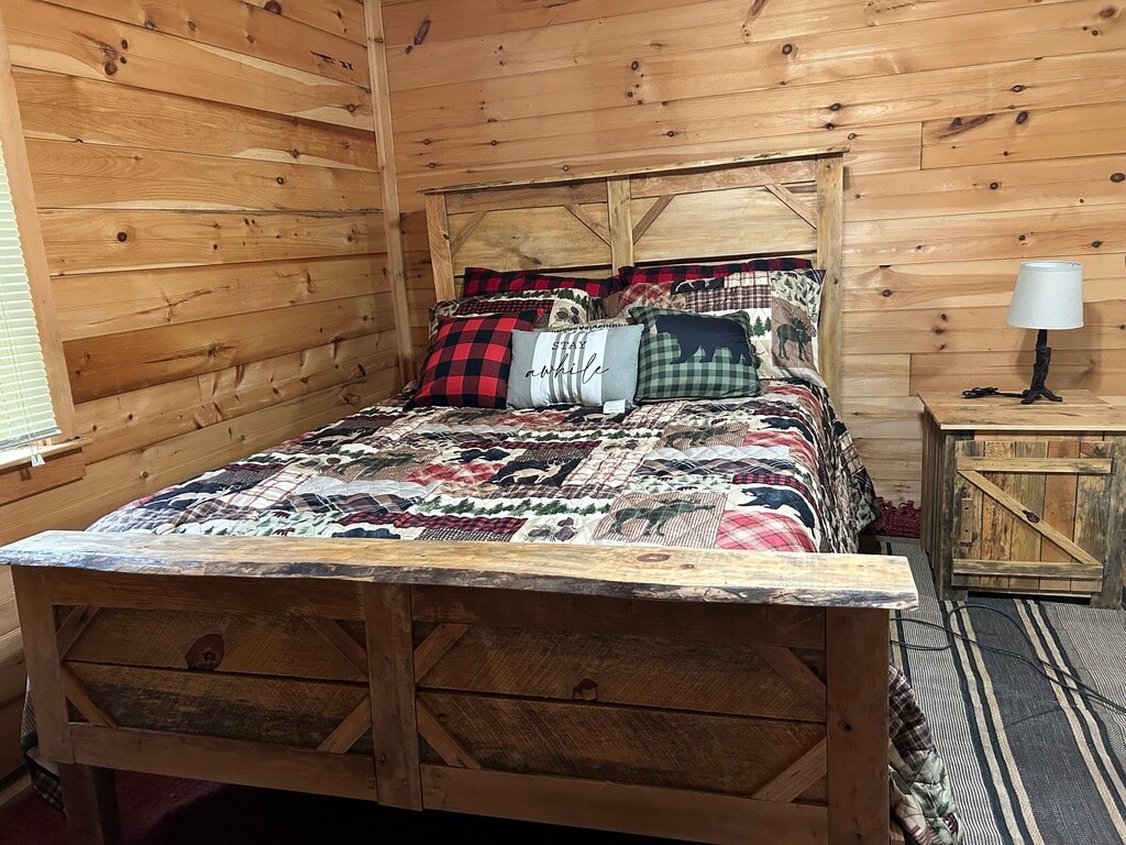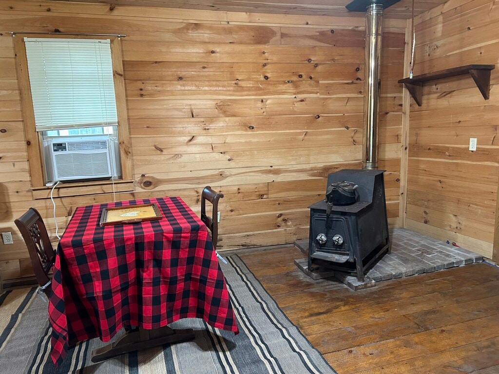 1 room Furnished Cabin with queen size bed and separate bathroom. Kitchen appliances and utensils, TV, internet, heat and air conditioning, Utilities included. Second Full size bed or crib can be provided for 2 children. Renter supplies their own linens, sheets and bedspreads, towels, washcloths, kitchen towels.... Pets welcomed to Formerly an Airbnb