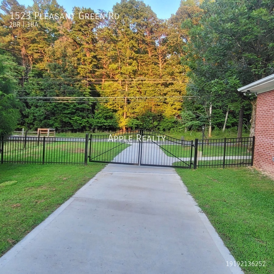 Beautiful 2-bedroom, 1-bath home located just 10 minutes from Duke, set in a peaceful country setting with views of a horse pasture. The home features a living room, eat-in kitchen, central heat and air, washer/dryer connections (washer/dryer can remain if tenants wish to use, though not maintained or replaced by owner), dishwasher, and stove. Interior updates include new carpet, fresh paint (the pink bedroom can be repainted upon request), hardwood laminate flooring in the bedrooms, vinyl in the baths, and updated bathrooms and kitchen. Additional amenities include ceiling fans in the bedrooms, a new concrete driveway with a private entrance gate and fence, four exterior security cameras, a storage shed, and a fenced yard. Dogs are welcome, but no cats.