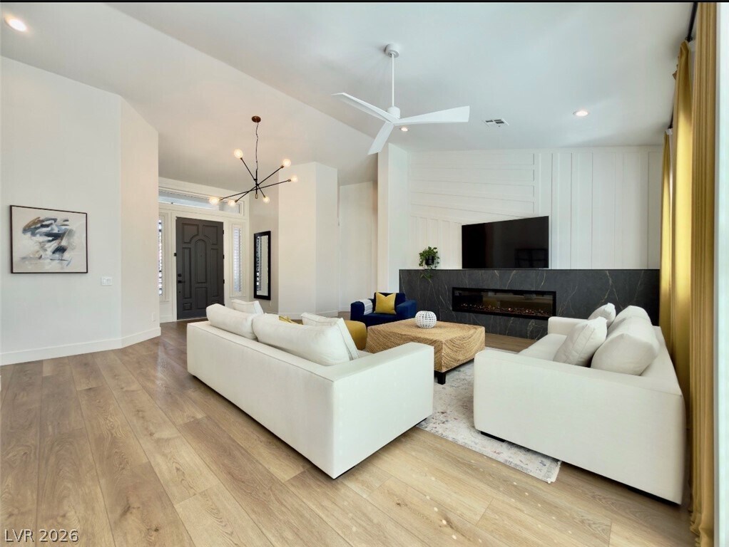Turnkey Furnished Luxury Home in Gated Peccole Ranch Resort Backyard, Designer Upgrades Experience luxury, privacy, and effortless indoor-outdoor living Professionally designed, this residence blends modern elegance with everyday comfort just minutes from Downtown Summerlin and Red Rock Canyon. This stunning home features 3 bed and 2.5 bath a spacious 3-car garage, and an oversized driveway. Inside, you'll find vaulted ceilings, two fireplaces, 8-foot doors,plantation shutters, custom curtains and premium luxury vinyl flooring, creating a bright and sophisticated open layout. The custom chef's kitchen and fully renovated bathrooms feature quartz countertops, designer finishes, and high-end appliances. The primary suite is located in its own wing with direct access to the backyard. Step outside to your private resort-style backyard featuring lush landscaping, a saltwater pool and spa with gas heating, covered patio, and built-in BBQ. solar panels for low electric bills EV charging