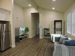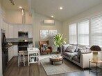 Large, airy 730 sq ft 1-bedroom 1-bath apartment home is our nicest floorplan and rarely vacant. Stunning 15 ft vaulted ceiling with recessed LED lighting. Open great-room kitchen floorplan. Large Master bedroom with walk in closet that has a window view of the F Street Victorians. Features include In-Unit washer/dryer, stainless steel appliances: deluxe 5-burner gas range, microwave, dishwasher, and garbage disposal. White solid maple cabinets with Quartz countertops. Sound-reducing Luxury Vinyl Plank flooring throughout. Deluxe pressurized dual-head tub/shower, high efficiency gas tank-less water heater. Dimmable LED ceiling lights throughout plus LED ceiling fan in the bedroom. Thermostat controlled high-efficiency heat/air in the bedroom and main room. All wood insulated dual-pane windows with 2” blinds throughout. Free high-speed Wi-Fi included! 1 free reserved parking space in our gated, lighted lot. Also, Free secure WIFI exclusive to your apartment. We are pet friend...