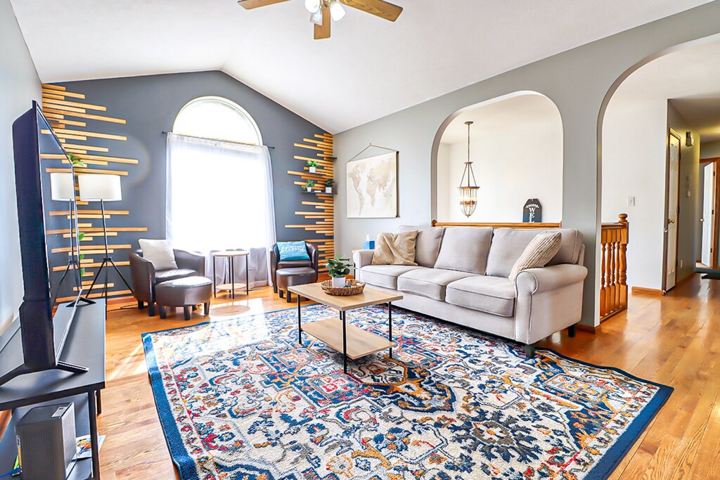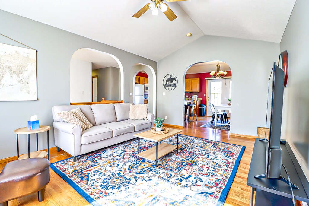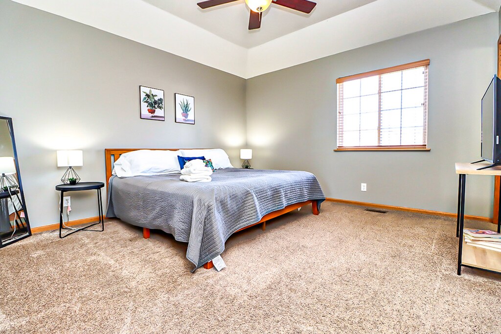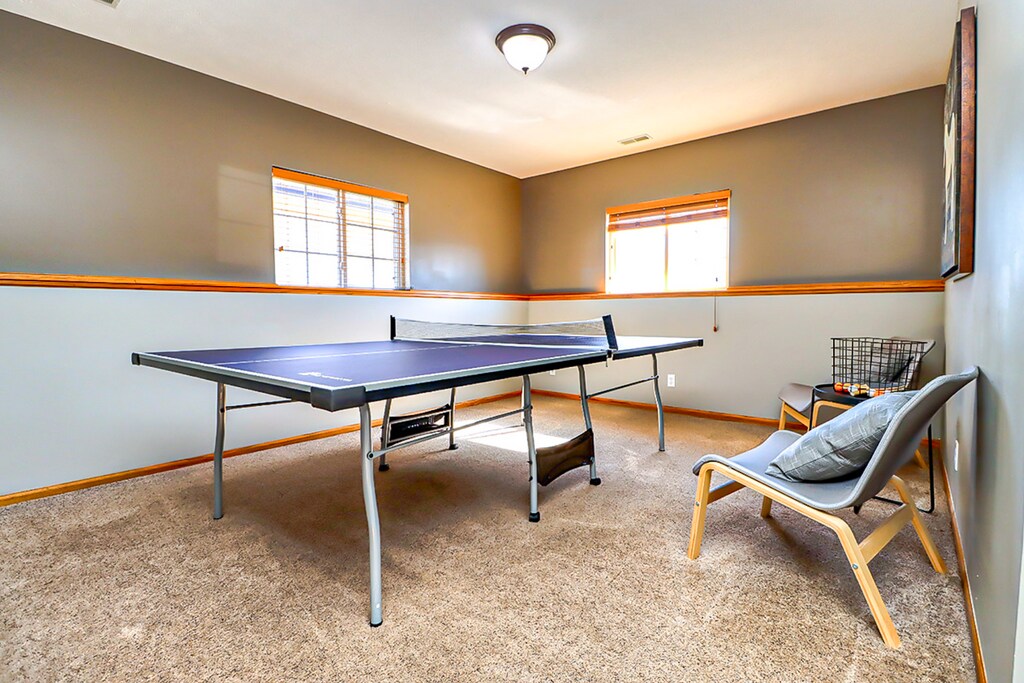Beautiful home for anyone visiting Lincoln! Incredible location - 5 min drive to shopping and interstate, 8 min drive to UNL, downtown, Haymarket, and the Pinnacle Bank Arena. Free parking and 2 stall garage allow for 4 cars on the premises and street parking available. Best of all, family-friendly and safe neighborhood! This comforting home comes with many amenities to make your stay as perfect as possible! Main floor has: - Master bedroom and private bathroom - Two guest bedrooms - Additional bathroom - Full kitchen and dining room - Living room Basement includes: - Bedroom - Half bathroom - Rec area with ping pong table