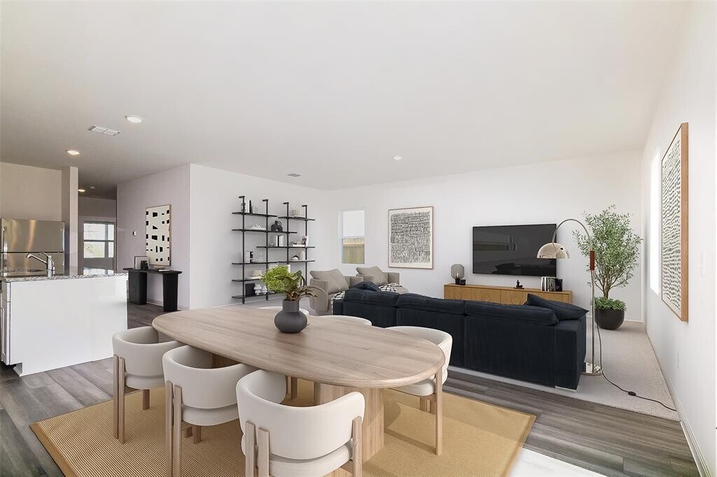 New construction • All appliances included • Near Texas State University & San Marcos High School Brand-new single-story home, never lived in, offering 1,827 sq ft of modern living in the Cottonwood Creek community. This 4-bed, 2-bath layout features an open-concept design with a spacious living area and a bright kitchen equipped with granite countertops, stainless steel appliances, gas range, microwave, dishwasher, refrigerator, and a large island with seating space. A dedicated laundry room includes a full-size washer and dryer for added convenience. The private bedroom wing provides separation from the main living spaces, and the carpeted bedrooms offer comfort with large windows for natural light. Vinyl plank flooring runs throughout the main areas, adding durability and easy maintenance. The primary suite includes an en-suite bathroom and generous closet space. A sliding door opens to the fenced backyard with a concrete patio—ideal for outdoor use. The 2-car garage provides secure parking and storage. This home sits close to key anchors, including approx. 2.3 mi to H-E-B, 3.1 mi to I-35 access, 2.0 mi to Cottonwood Creek Park, and 4.4 mi to Downtown San Marcos. Education hubs such as San Marcos High School (~0.7 mi) and Texas State University (~4.9 mi) are easily accessible, offering excellent proximity to campus, classrooms, and local resources. All appliances—including refrigerator, washer, and dryer—are included.