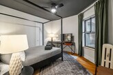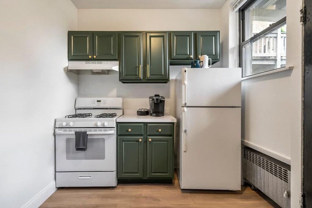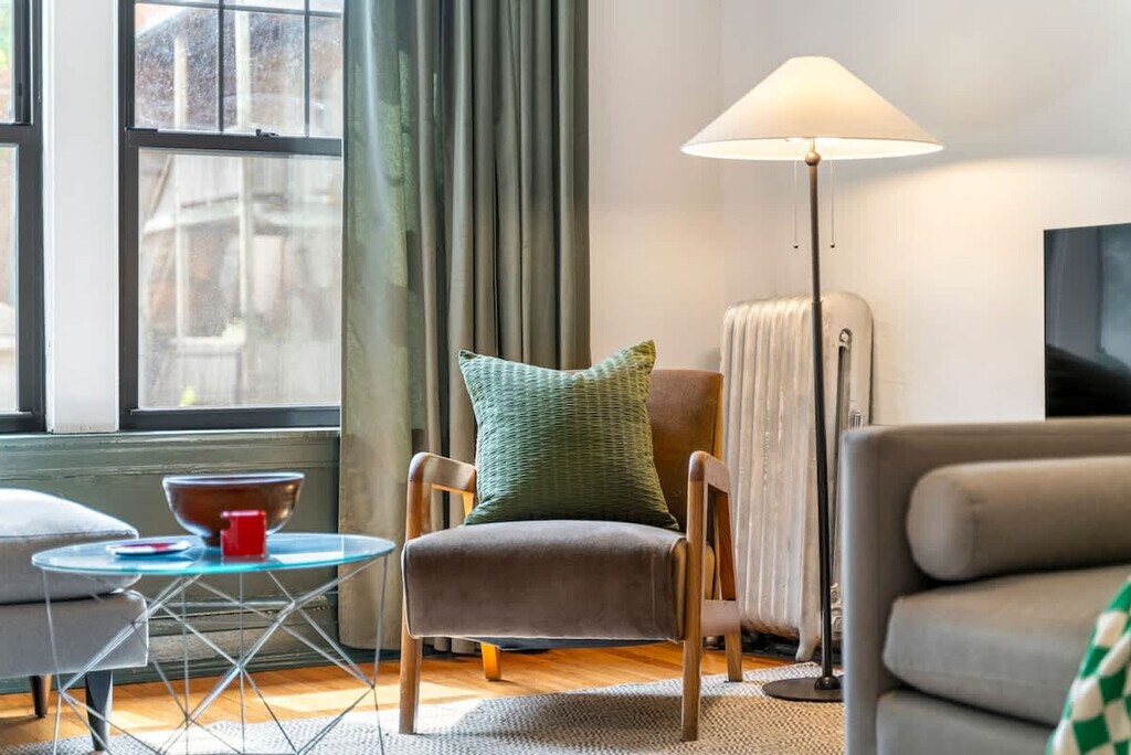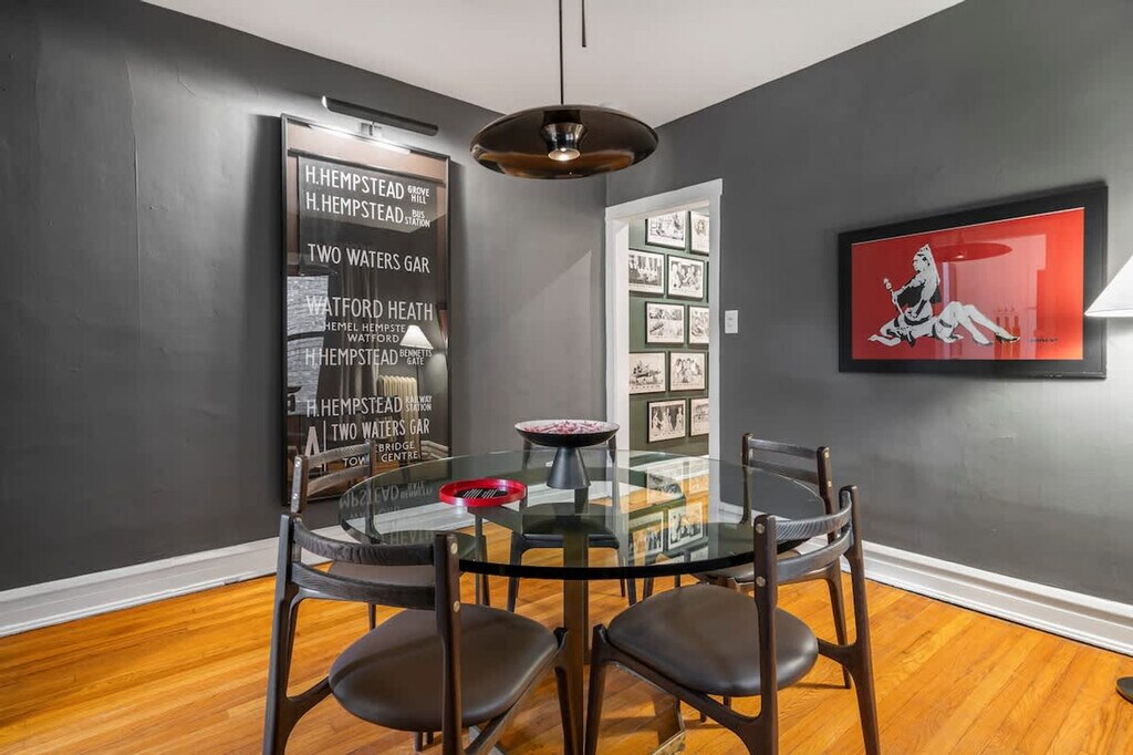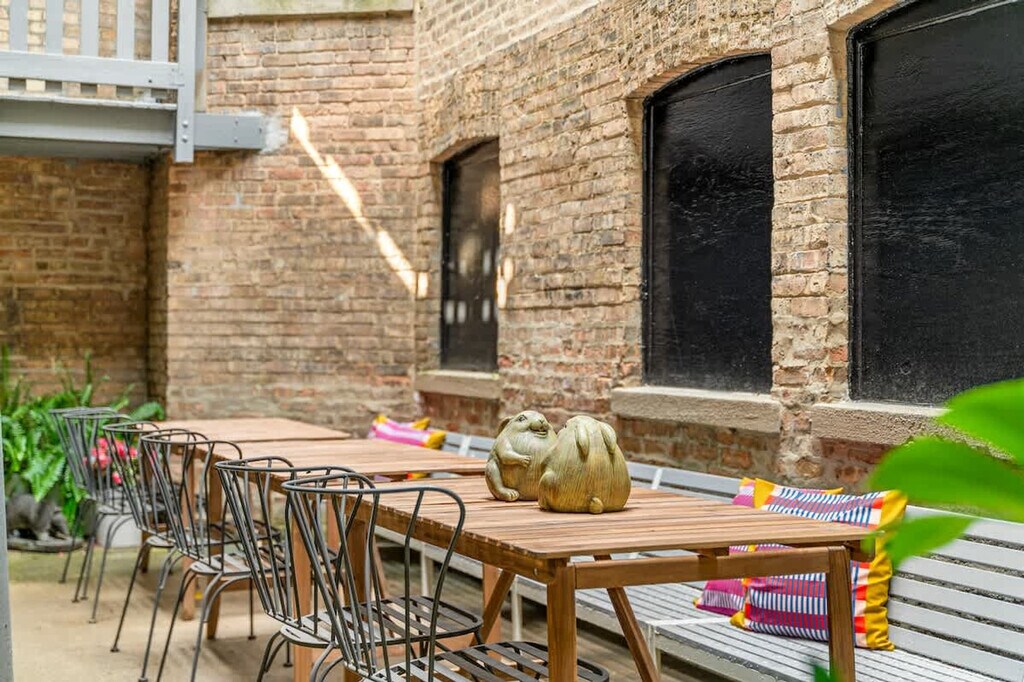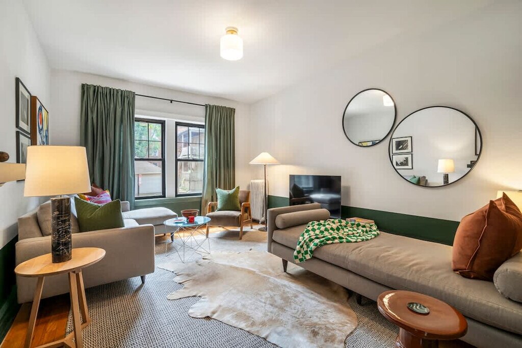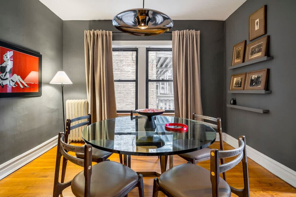 Feel at home in this ground floor garden unit in a vintage Chicago building. Be aware that there are six steps up into the unit, plus a couple of rather heavy doors to pull open, so it’s not great for guests with limited mobility. It sleeps 2 and is located with easy access to Wrigley Field, the bustling Southport shopping corridor, and all of the 'Boystown' nightlife. This apartment features a full kitchen, fast Wi-Fi, and a tub. You'll find soft, nice sheets, good pillows, a nice mattress, thick towels, and Public Goods bath products. Coffee and a few small extras are provided. This is a vintage Chicago building with quirks: the layout rambles a bit, and there is a hallway radiator situation parked outside of the front door. There is also a radiator in the unit that is passionate and not afraid to express itself. The furnishings were assembled over time and are outside of the bland mess most folks offer up. Guests staying under 14 days get access to The Metropolitan Club, a members-only co-working and dining space on the 66th and 67th floors of the Willis Tower. The apartment is in Ravenswood, a peaceful, tree-lined neighborhood with its own vibe. It's tucked into a quiet pocket of the city just a few blocks from Clark Street, where things get lively fast. Walk ten minutes and you’re on the Brown Line train (a super scenic trip that takes you straight into the heart of the city); hop the Clark bus and you’ll be down in Wrigleyville or up in Andersonville before your phone finishes loading the weather. Wrigley Field is a 20-minute walk or a 5-minute cab ride. Street parking is generally available on our block and surrounding ones, except during Cubs games or Wrigley Field events between 5–10pm, when the city enforces a strict towing policy. There is no smoking of any kind in the unit, and there will be an automatic $500 cleaning fee if there is any smoke smell inside of the unit. Quiet hours are from 10PM to 8AM. There is an automatic $100 late check-out charge if you're still in the property 20 minutes after check-out. There is a $45 fee if you lock yourself out or lose your key. [SI]